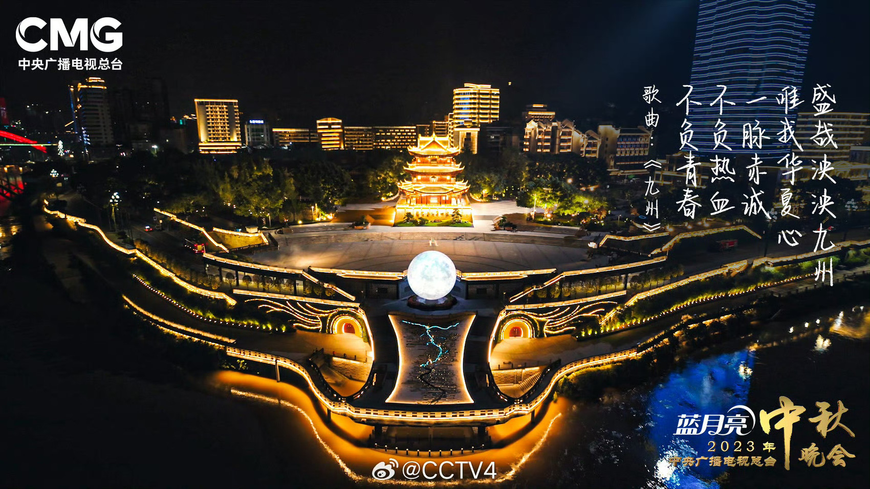 晚会中,外景拍摄镜头涉及李庄古镇月亮田、夹镜楼、白塔、流杯池、石海溶洞、宜宾长江大桥等实景,与主舞台中央的“水池明月”遥相呼应,融为一体,营造出了如梦似幻的氛围,共同传递中秋主题。