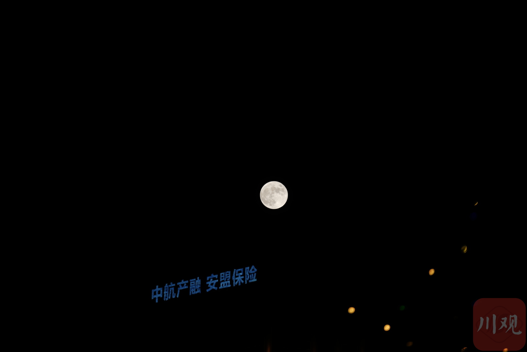 中秋节之夜,一轮圆月出现在天府双塔一侧。