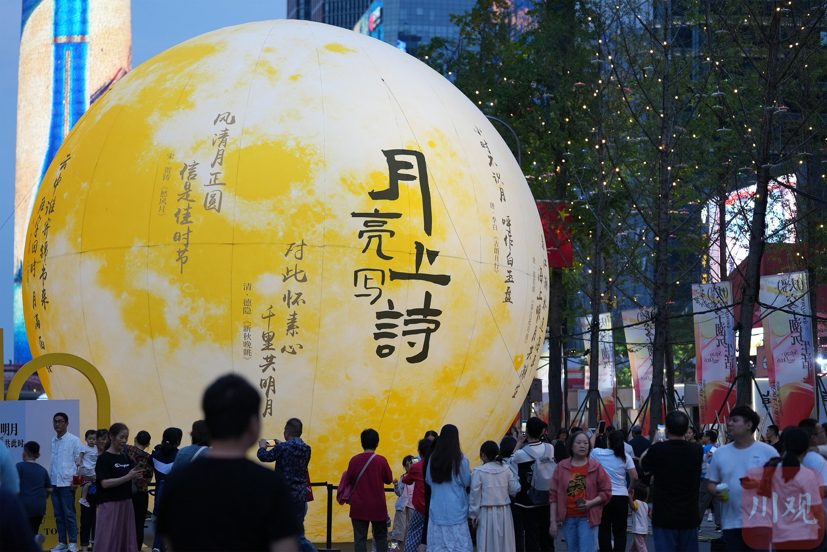 在交子大道上,一个巨型月亮装置格外引人注目。