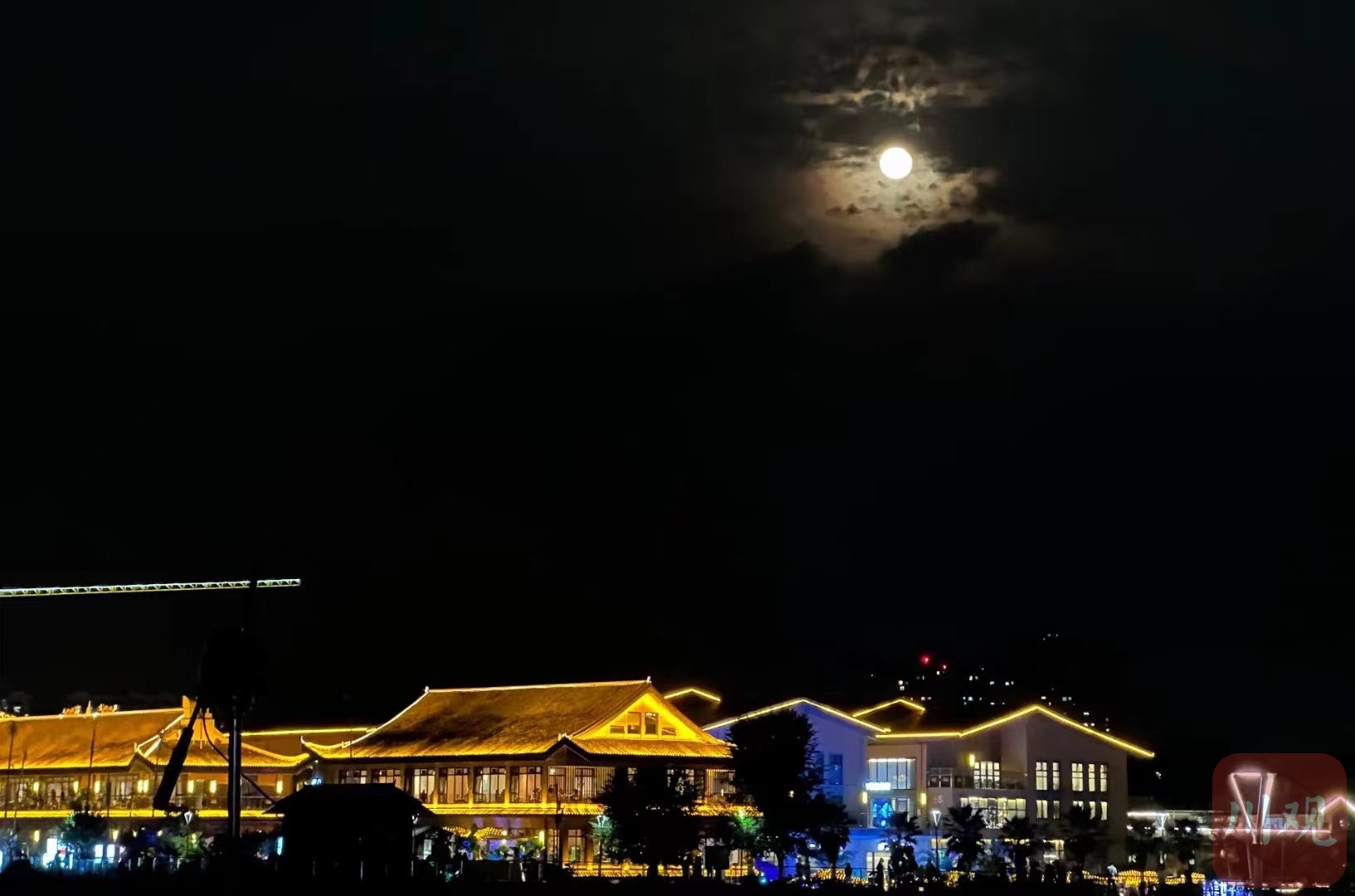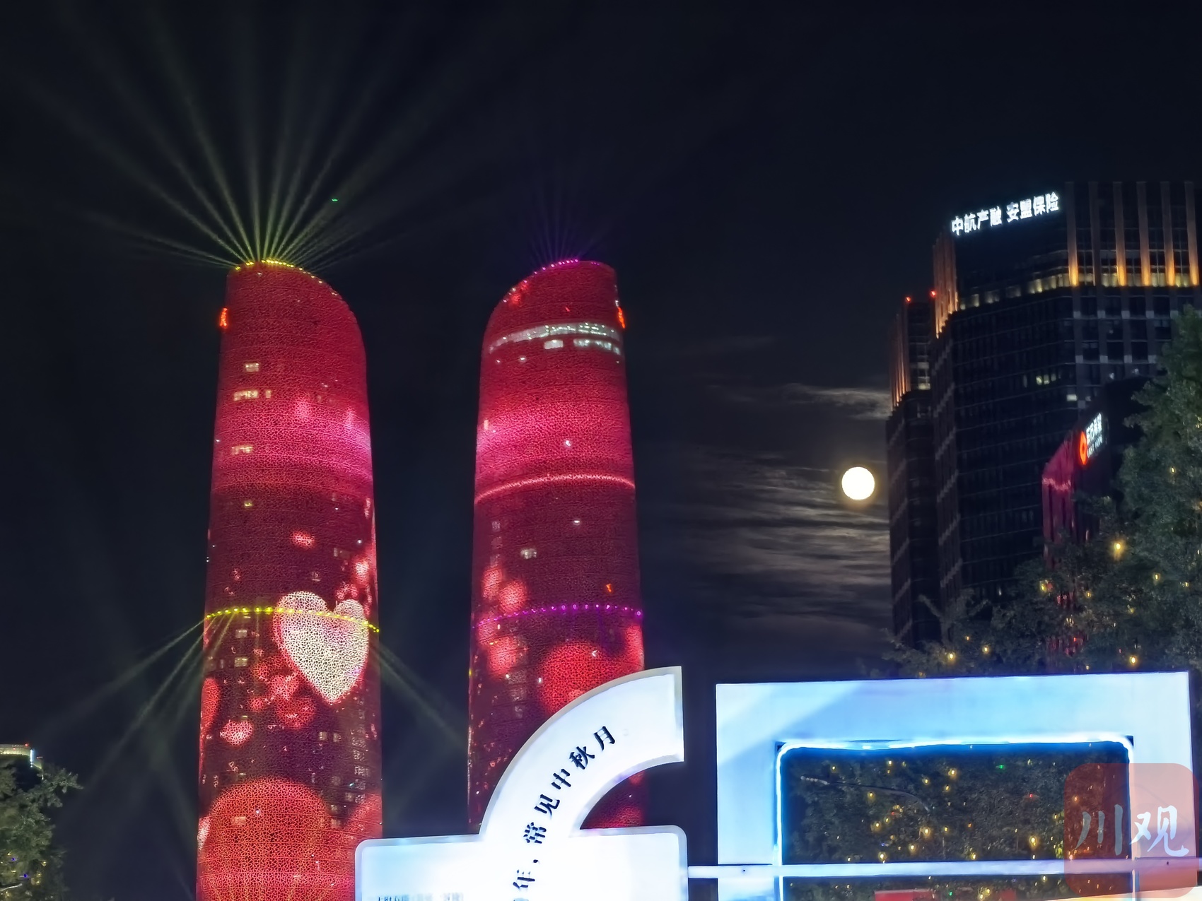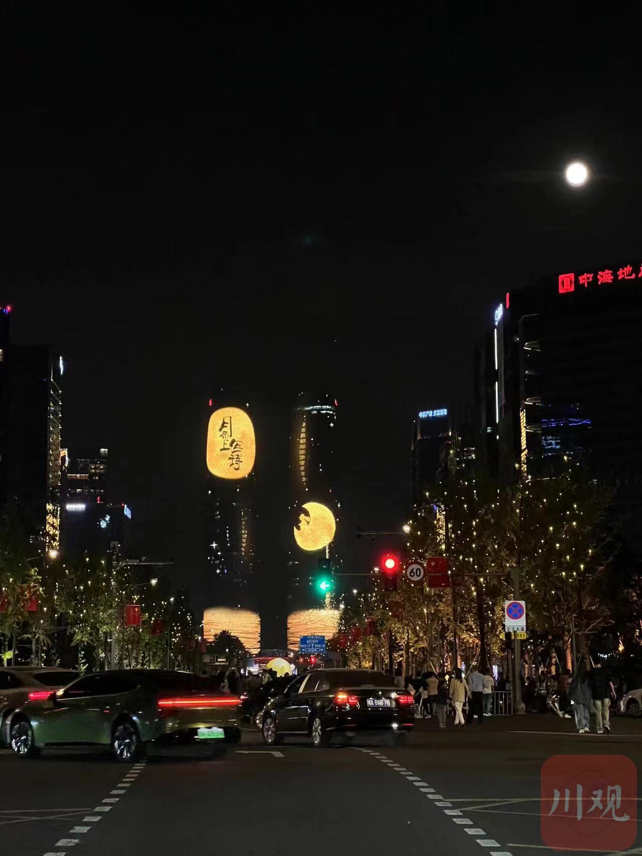 9月29日晚,中秋之夜。成都市城市上空,一轮中秋明月缓缓升起。随着月亮的升高,整个城市笼罩在银色的月光下,市民纷纷拿起手机记录下这美丽的景象。