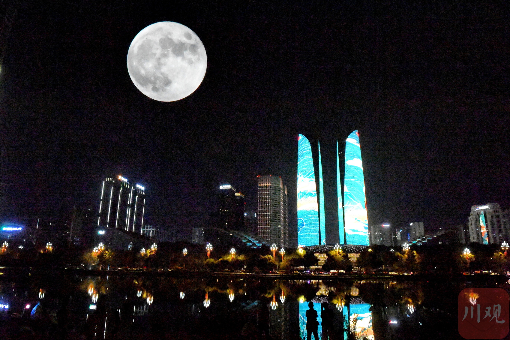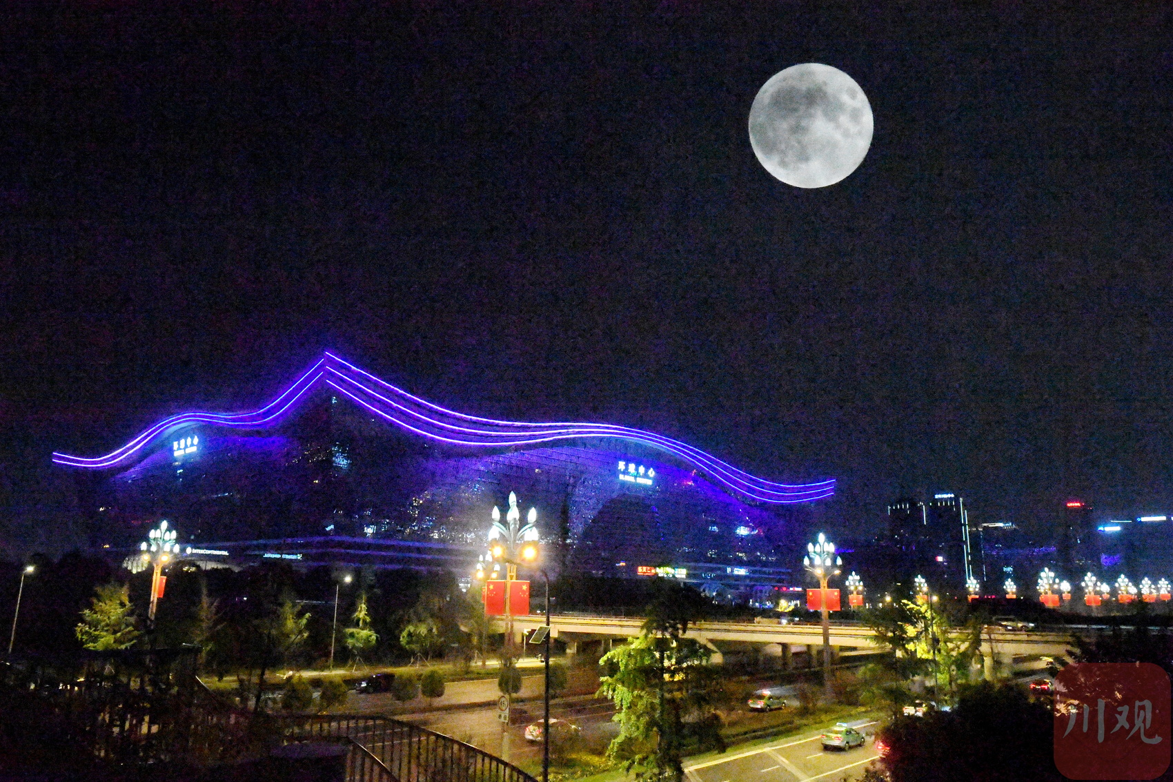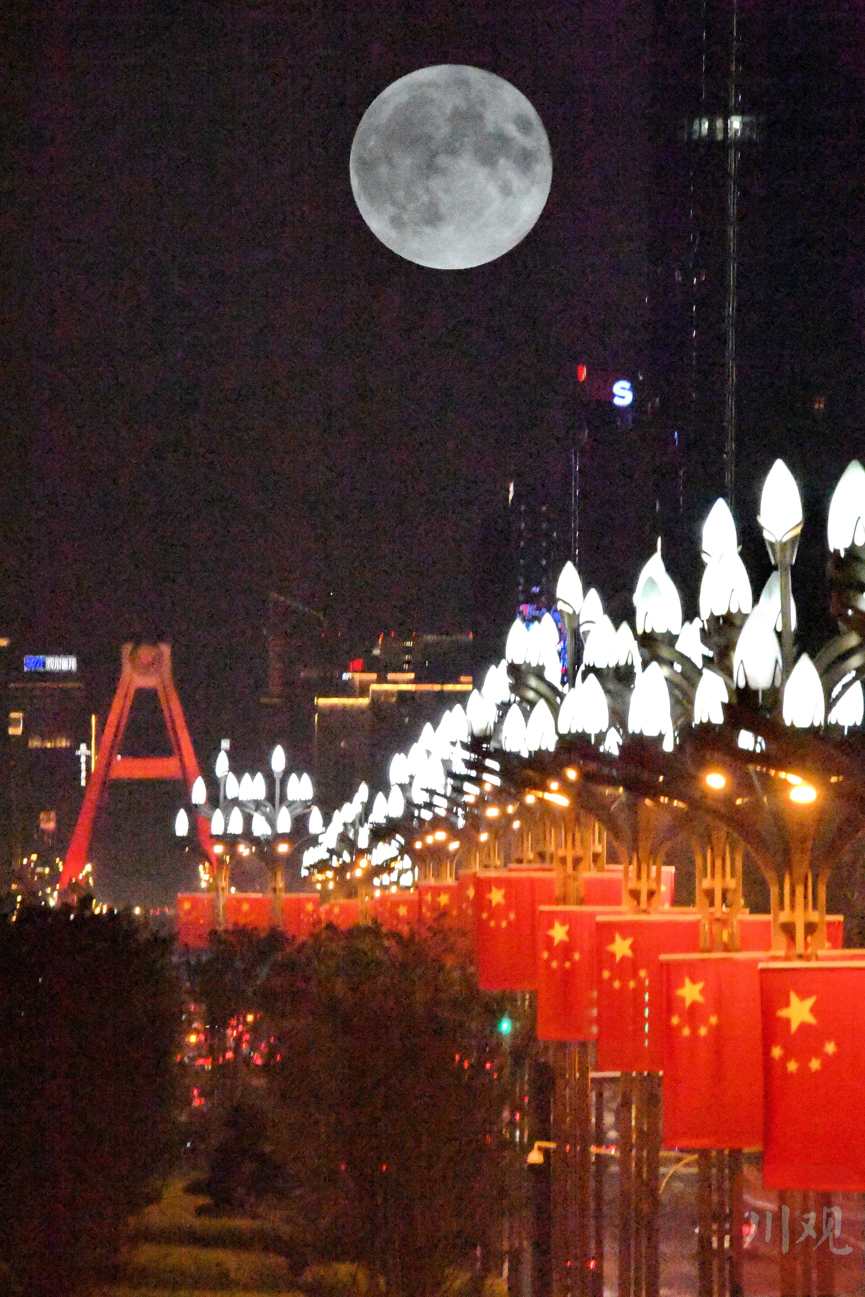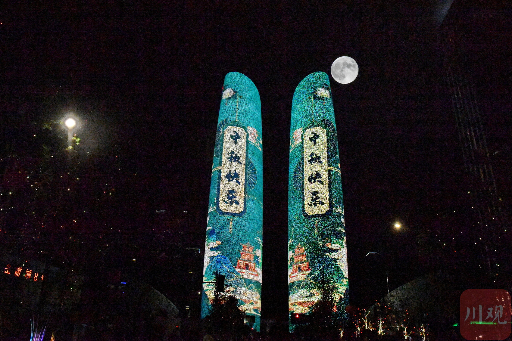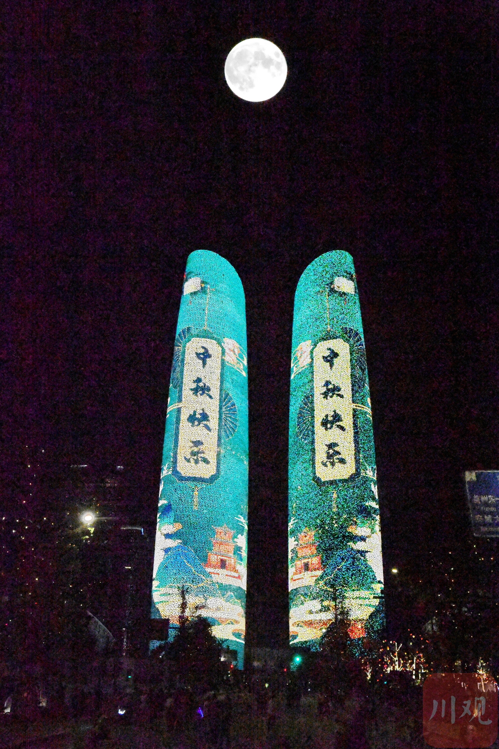9月29日是农历八月十五中秋佳节,当晚,川观新闻记者在中国-欧洲中心、环球中心、天府立交桥、金融城双子塔等成都地标建筑附近,用二次曝光模式拍摄了“十五的月亮”,月光洒满成都,美轮美奂。
