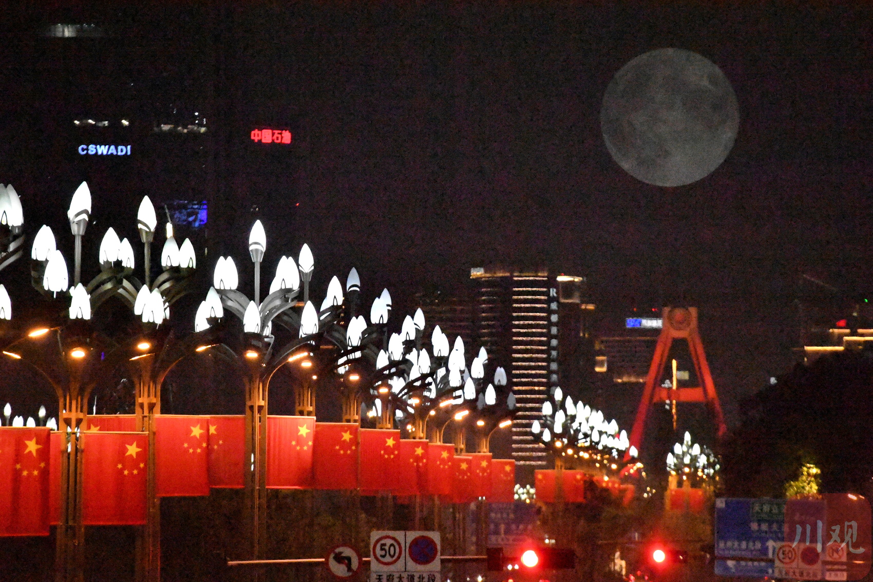 9月29日晚,十五的月亮与天府立交桥。(二次曝光拍摄)