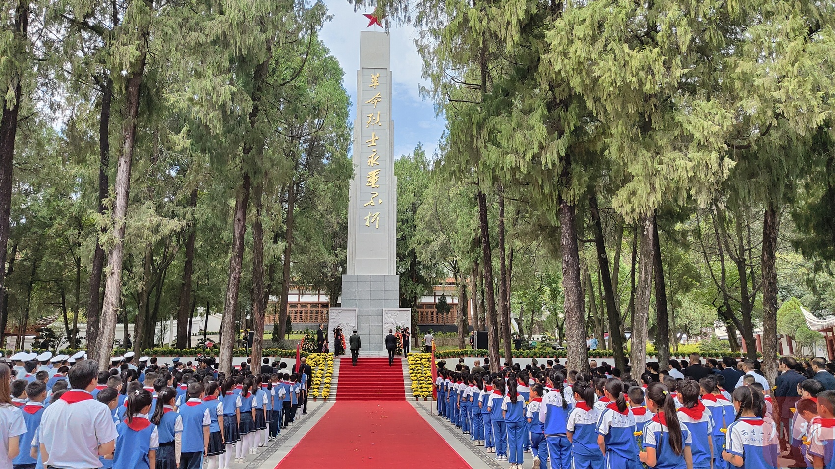 上午,西昌烈士陵园一片静穆。9时30分,敬献花篮仪式正式开始。全场奏唱《中华人民共和国国歌》,全场肃立,向烈士默哀,来自西昌阳光学校和西昌二小的少先队员献唱《我们是共产主义接班人》,并致少年先锋队队礼。