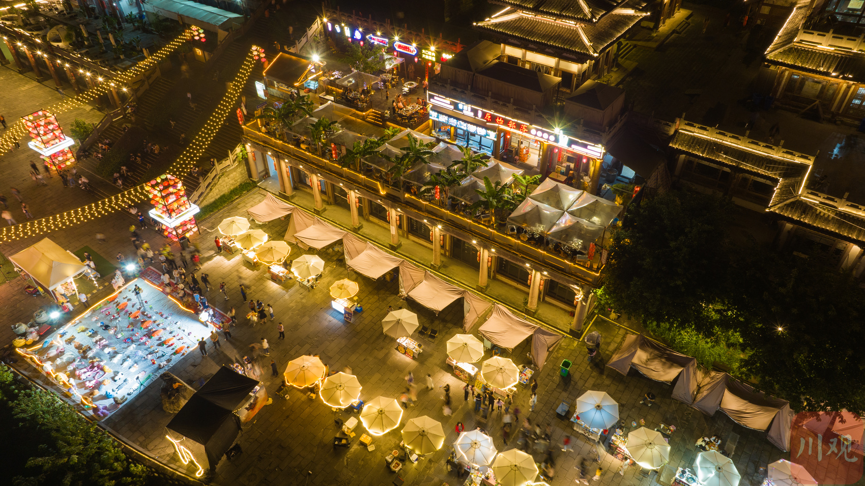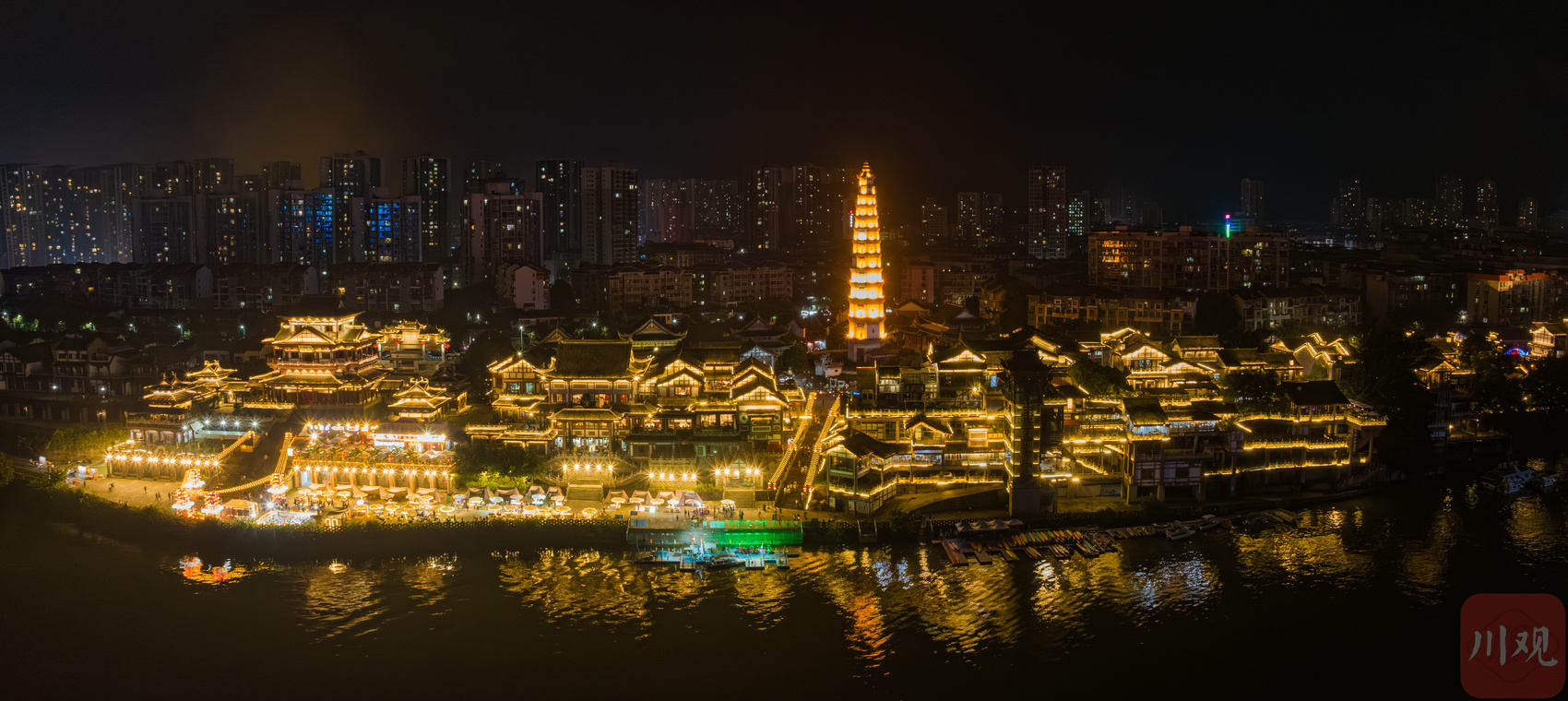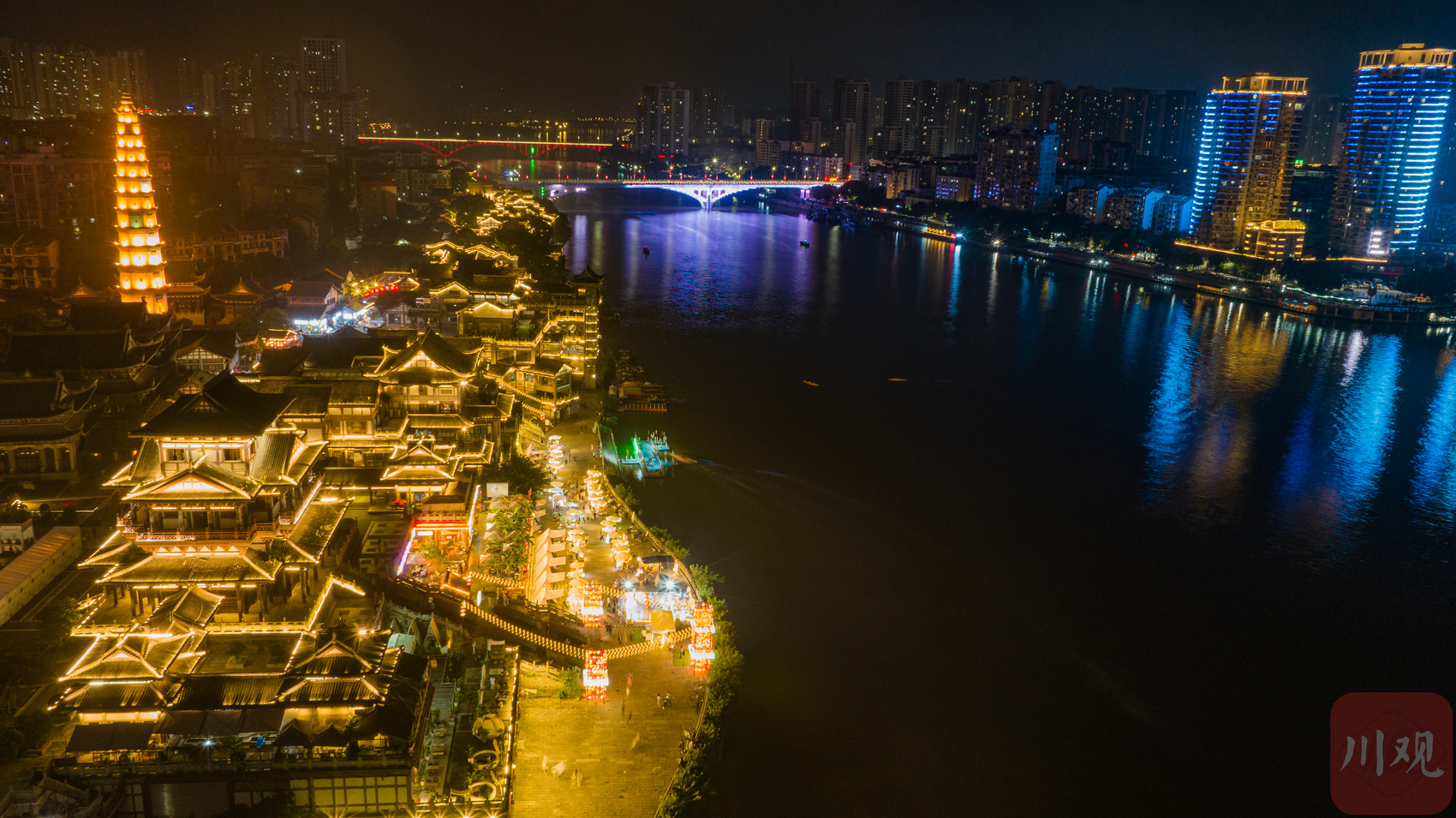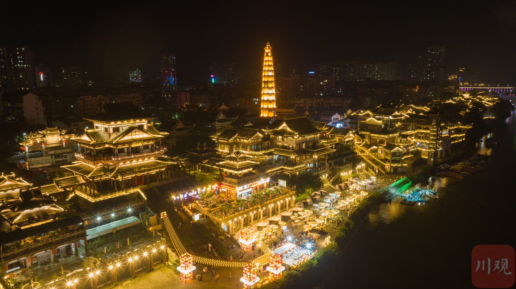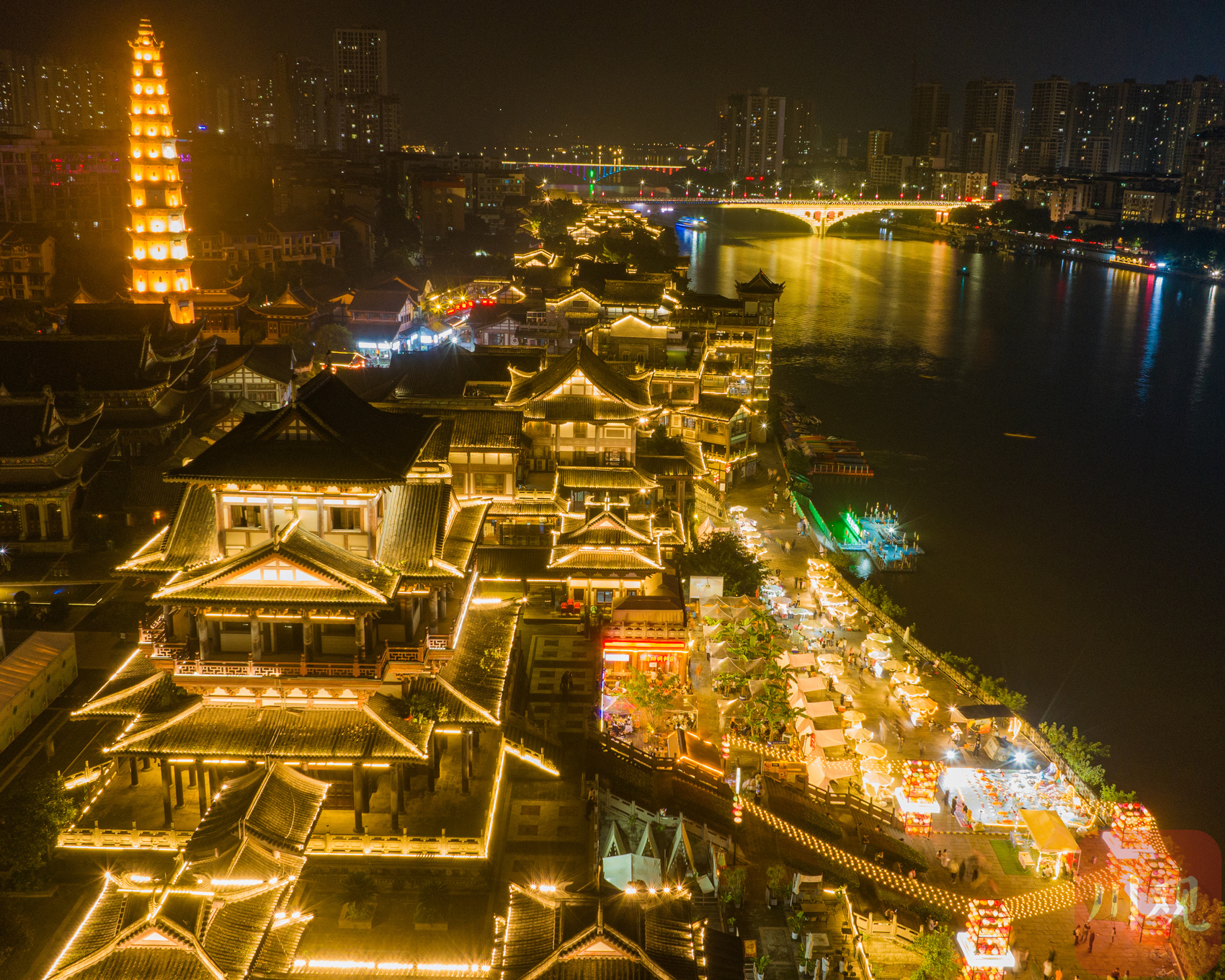 2023年9月29日夜,重庆市合川区文峰古街灯光璀璨,美景如画,有如又一版“洪崖洞”。各地游客纷至沓来,在此赏夜景品美食,过一个欢乐祥和的中秋、国庆双节。