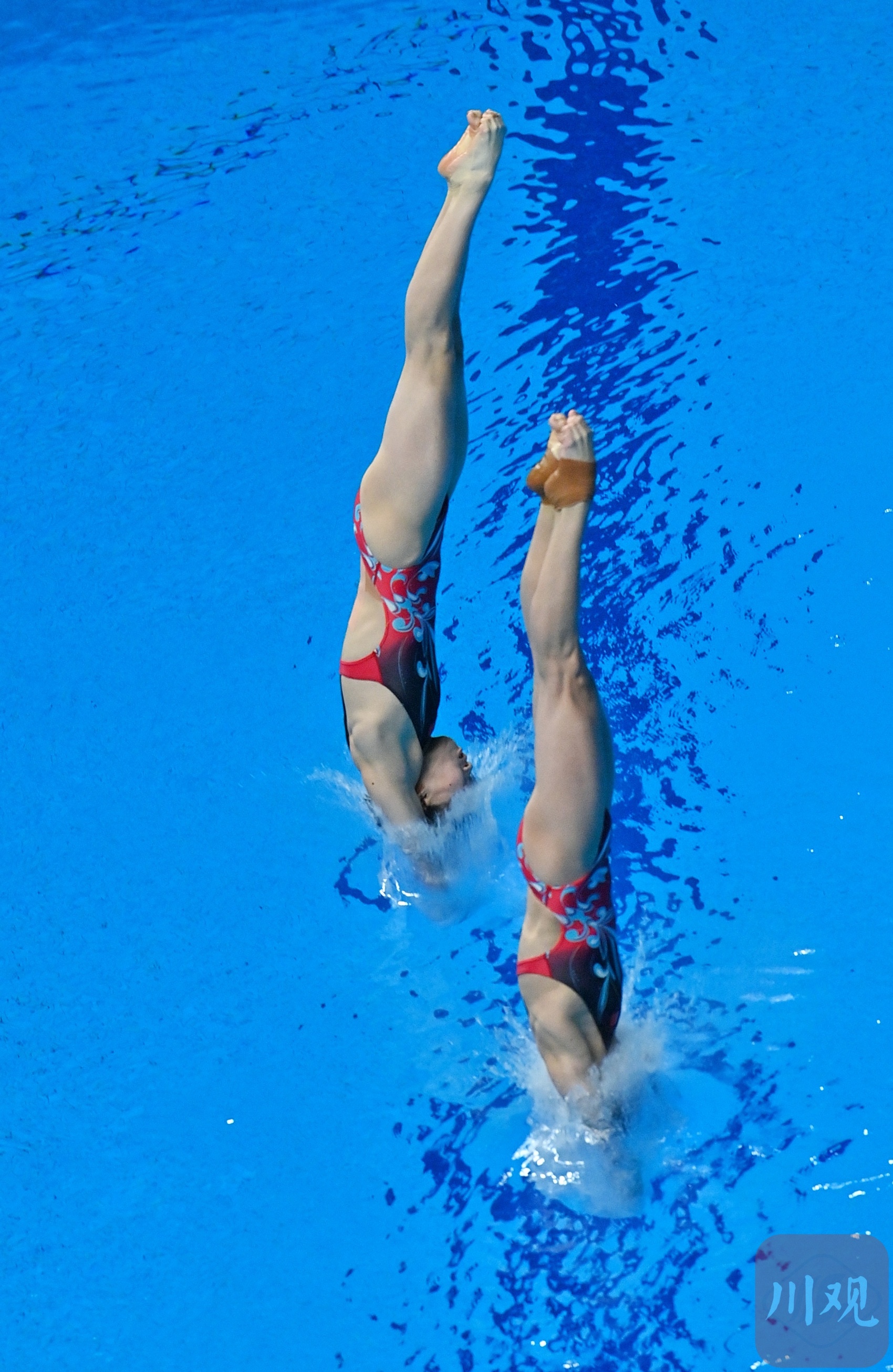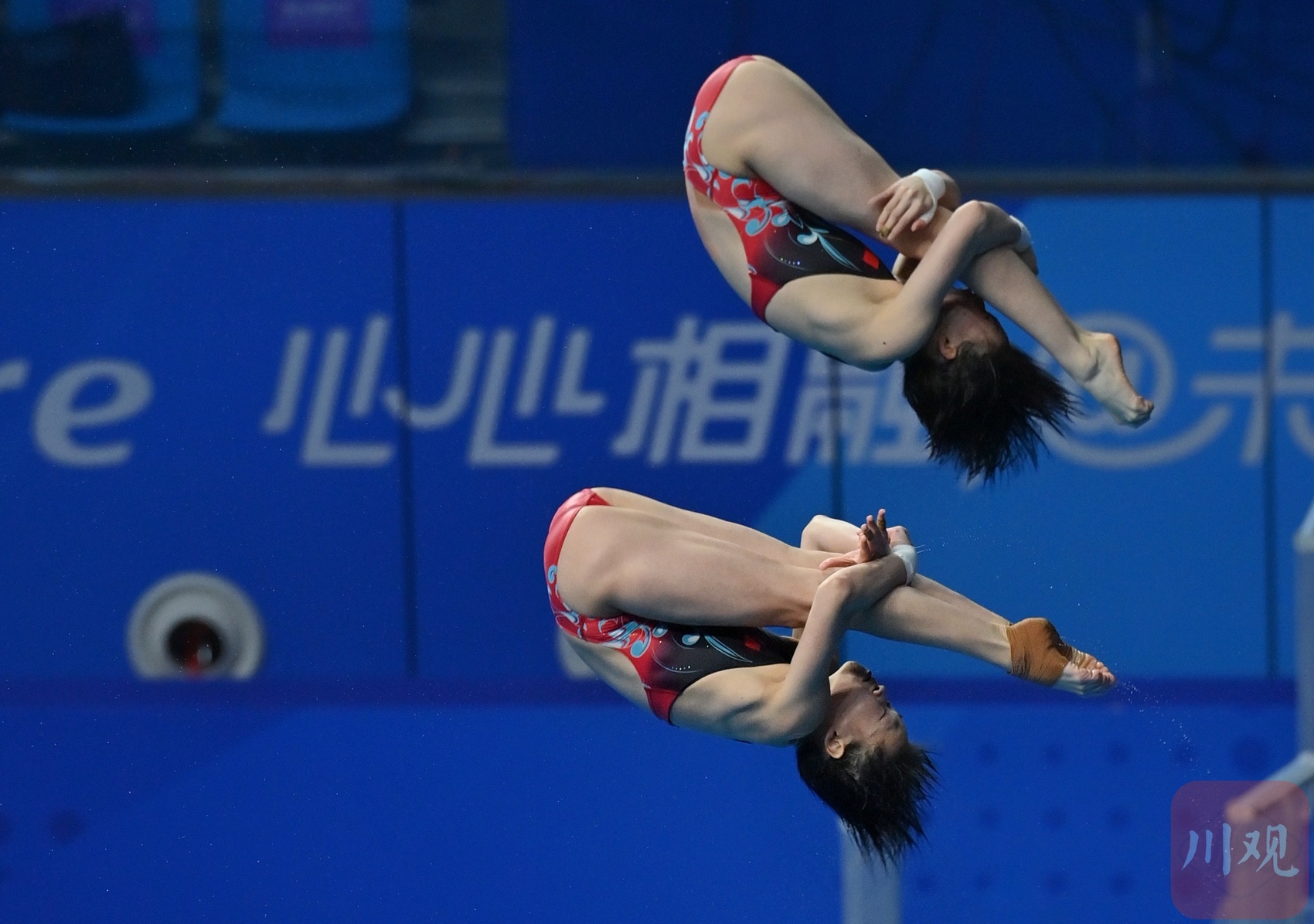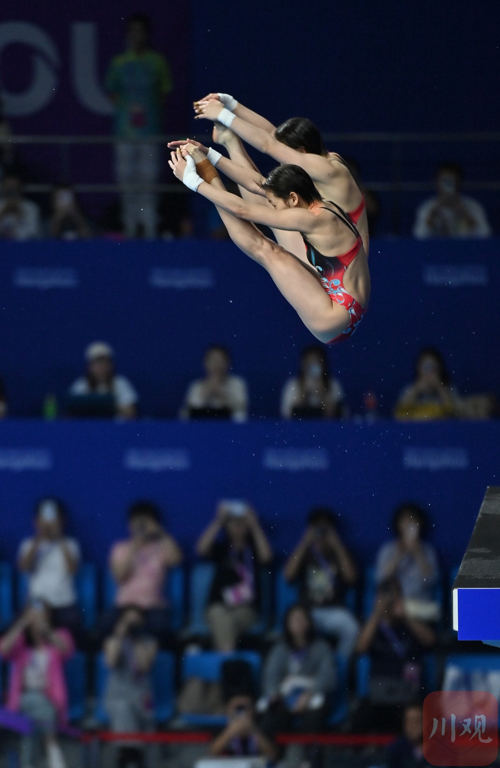 全红婵(前)和陈芋汐在跳水比赛中