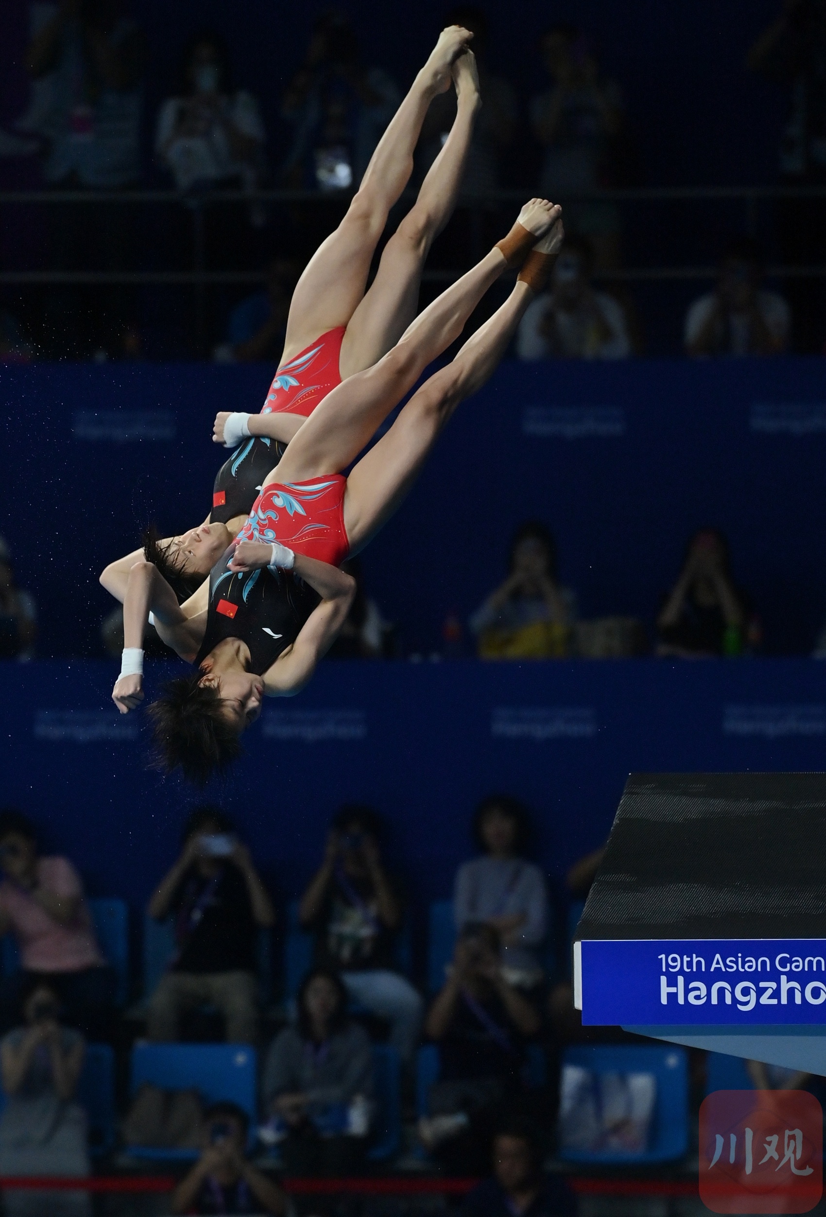 9月30日,杭州亚运会跳水项目女子双人10米跳台决赛在杭州奥体中心游泳馆举行,中国组合全红婵/陈芋汐以375.30分获得冠军。