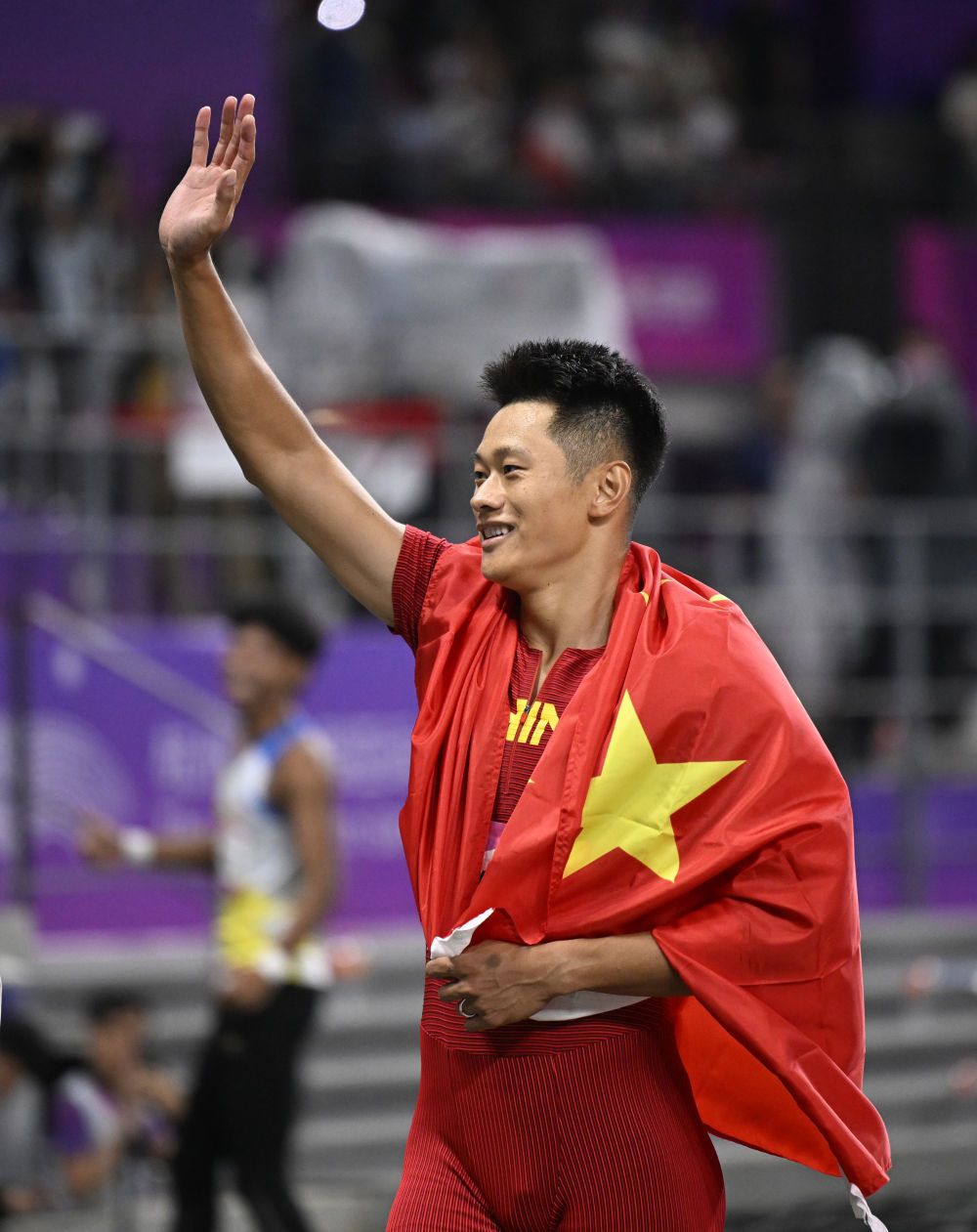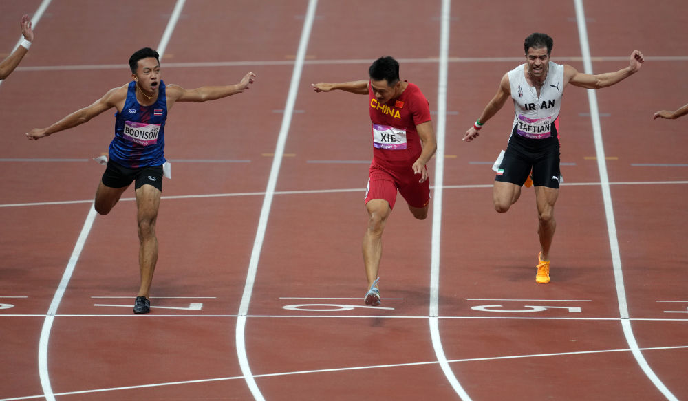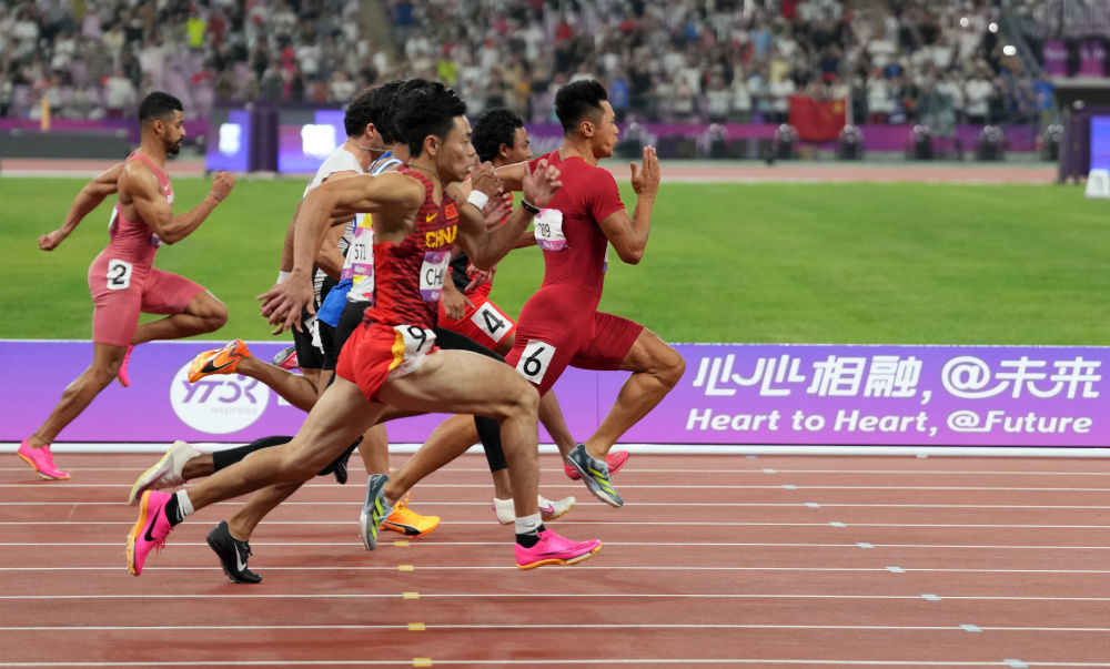 9月30日,杭州亚运会田径项目男子100米决赛在杭州奥体中心体育场举行,中国选手谢震业以9秒97的成绩夺得金牌。