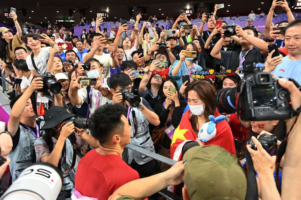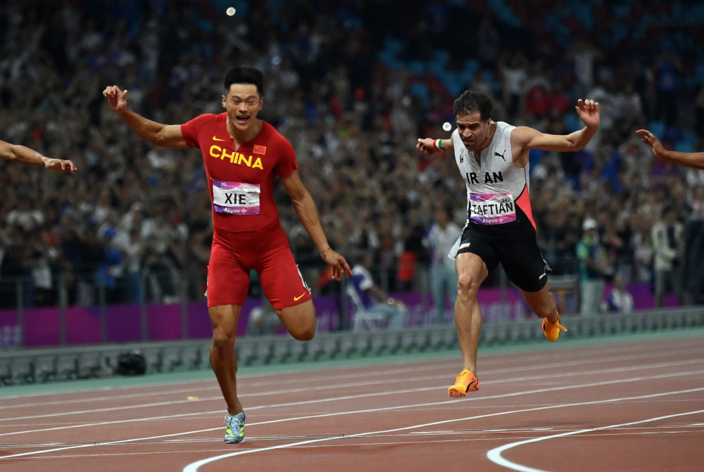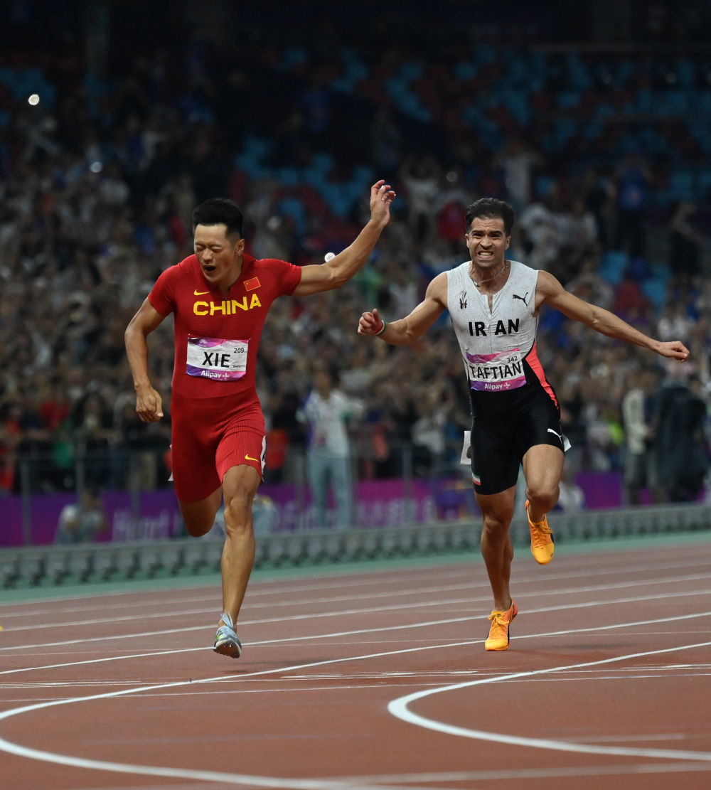 ↑中国选手谢震业在比赛后庆祝。新华社记者 江文耀 摄