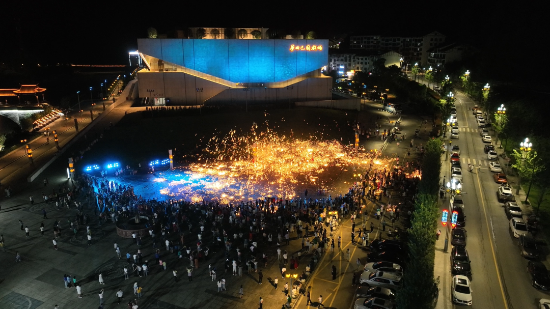 宣汉巴山大峡谷景区组织渡口风情小镇《天歌地韵》水舞秀、中秋拜月大典、派发月饼、非遗(打铁花)等专场表演,画架沟观光电梯、悬崖秋千、步步惊心、火箭蹦极等体验性强、惊险刺激的互动游玩项目,让游客大呼过瘾。