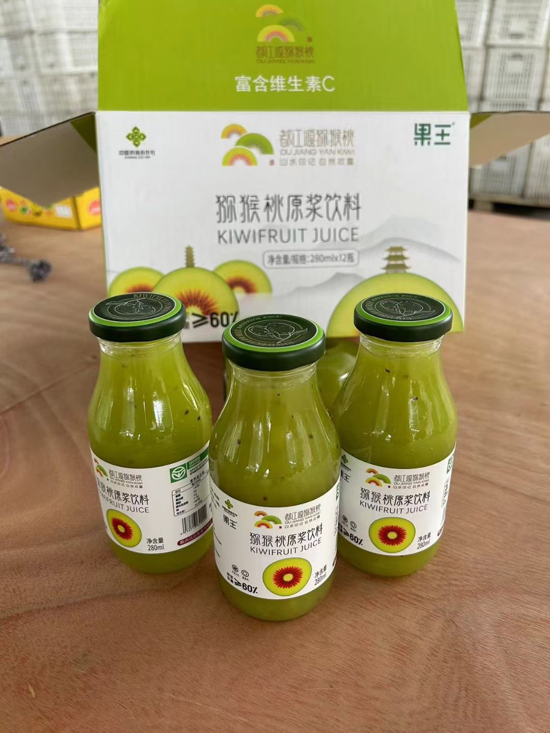 今年新上市的都江堰猕猴桃原浆饮料。图片由都江堰市猕猴桃协会提供