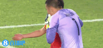 中国队门将韩佳奇十分不满队友王振澳的表现。