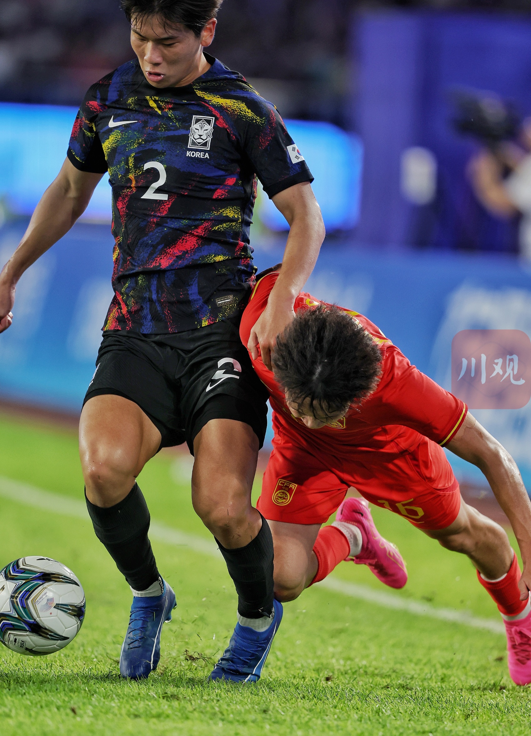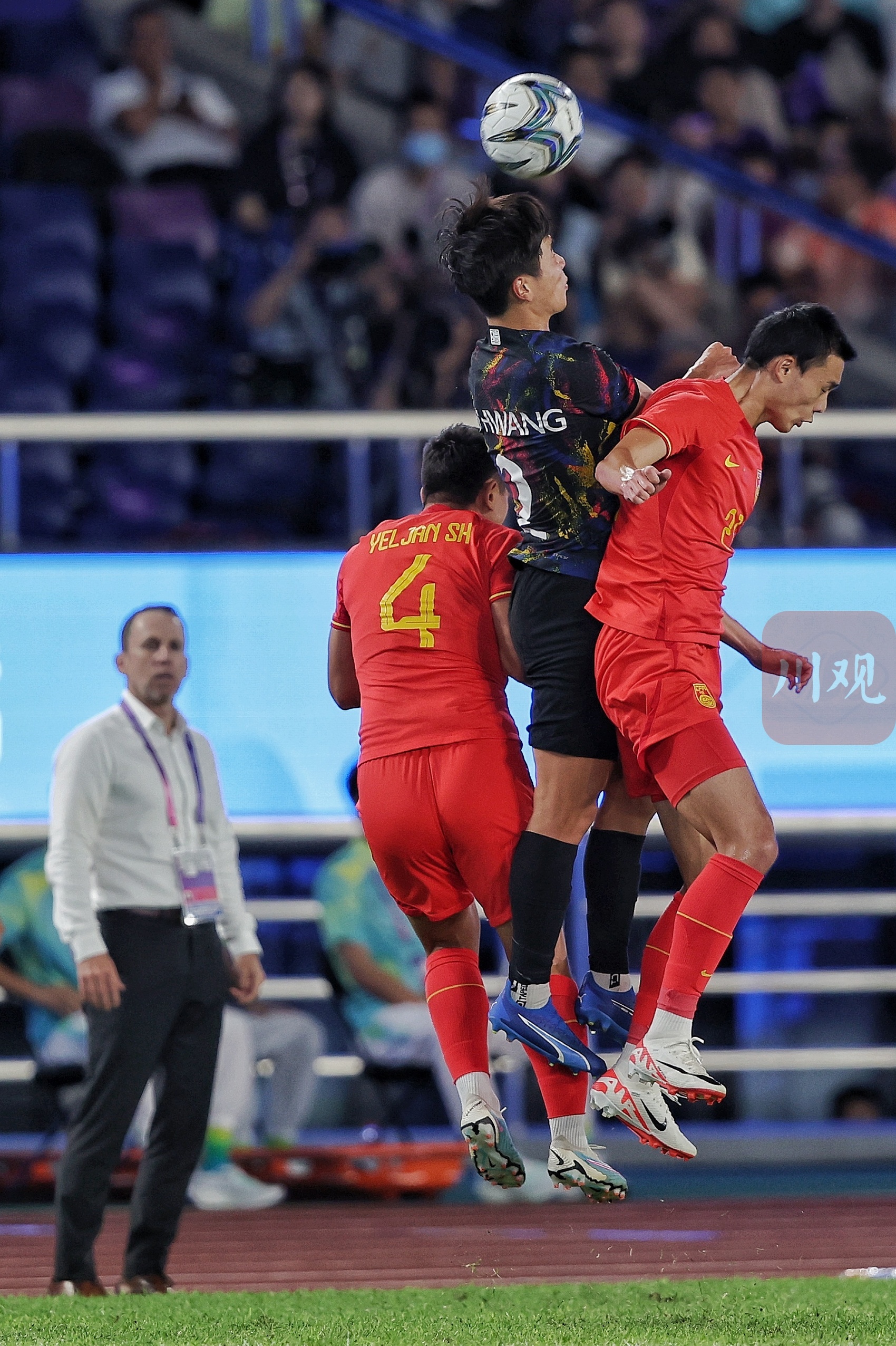 10月1日晚,在杭州黄龙体育中心体育场,杭州亚运会男子足球1/4决赛上,中国男足亚运队0-2负于韩国队。