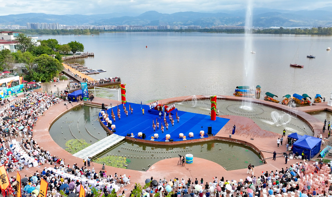在金秋十月举国同庆的好日子,西昌迎来了一年一度的邛海开海盛事。10月1日上午9点,西昌邛海开海节开幕式举行。今年的开海节上,祭海大典仪式以古代礼制(周礼)为灵,以佾礼、佾舞(6佾)为魂,演绎周礼翎子舞的经典之美。精彩的文艺演出从多角度展现邛海渔家儿女出海打鱼、鱼满船舱、喜报四方的过程,抒发西昌人对邛海的眷恋。
