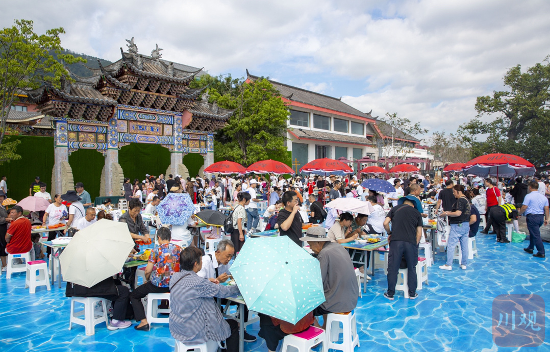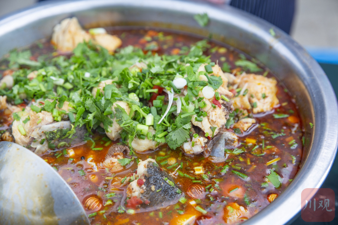 开海仪式结束后,千人渔家宴现场架起大锅,擅长各式烹鱼的大厨们,取最清澈的邛海水,或做成清蒸,或做成炖汤,或做成煎烤,烹煮出最正宗的渔家味道供市民游客品尝。