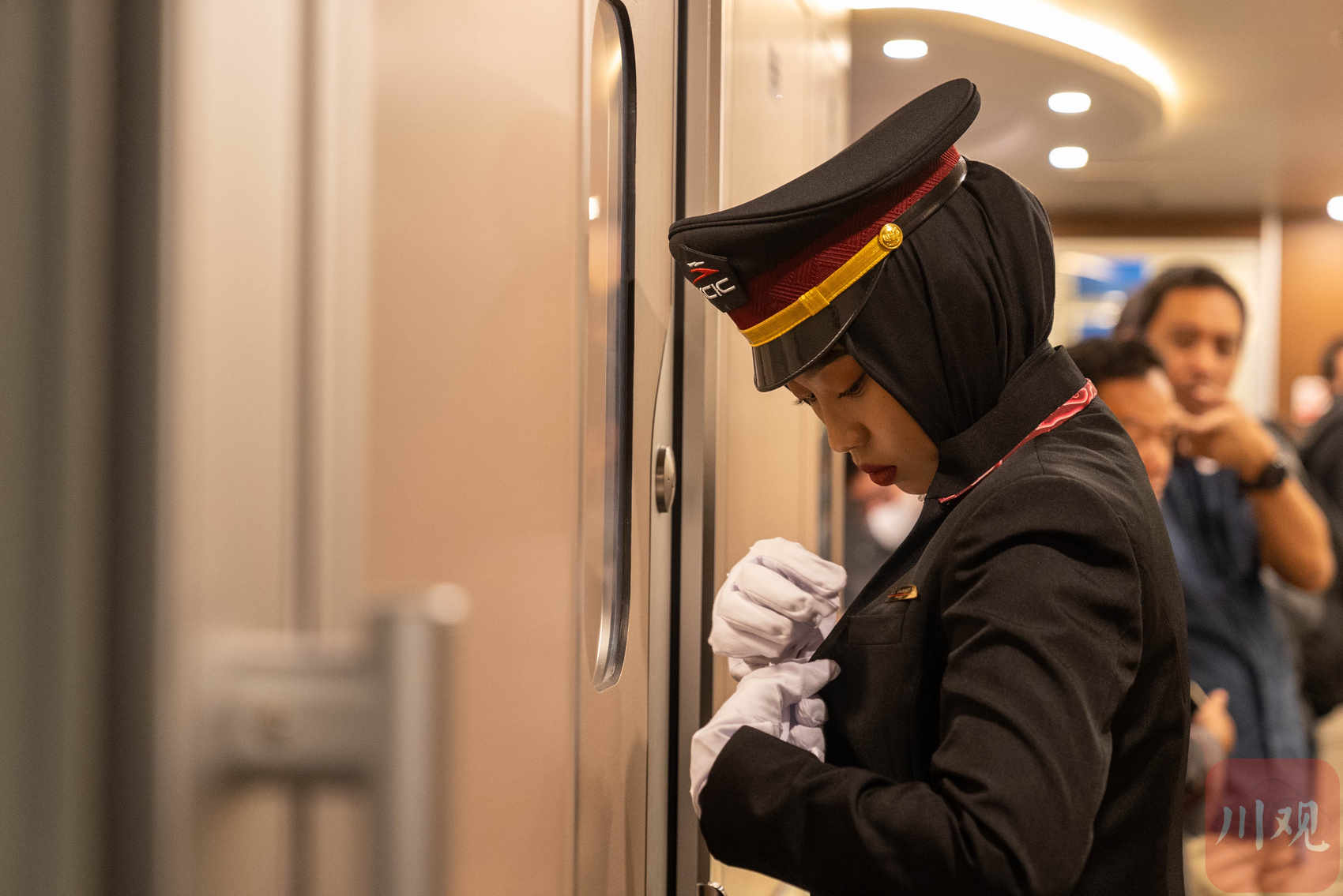 与兴奋的印尼民众不同,来自中国的客运专家郭睿涛则是“严阵以待”。他穿梭在车厢内四处检查,当列车停靠帕达拉朗站时,乘客们纷纷下到站台,拍照、合影,列车比原计划开车时间耽搁了1.5分钟。见状,郭睿涛严肃地对列车组工作人员说,这里只有1分钟停靠时间,除了下车旅客,要劝阻其他乘客下车,“高铁准点准时,有一套严格的运行标准。”