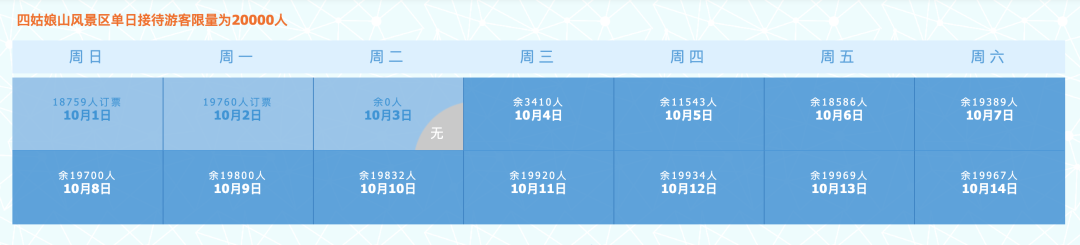 据阿坝旅游网,四姑娘山景区单日接待游客限量为20000人,10月3日门票已售罄。