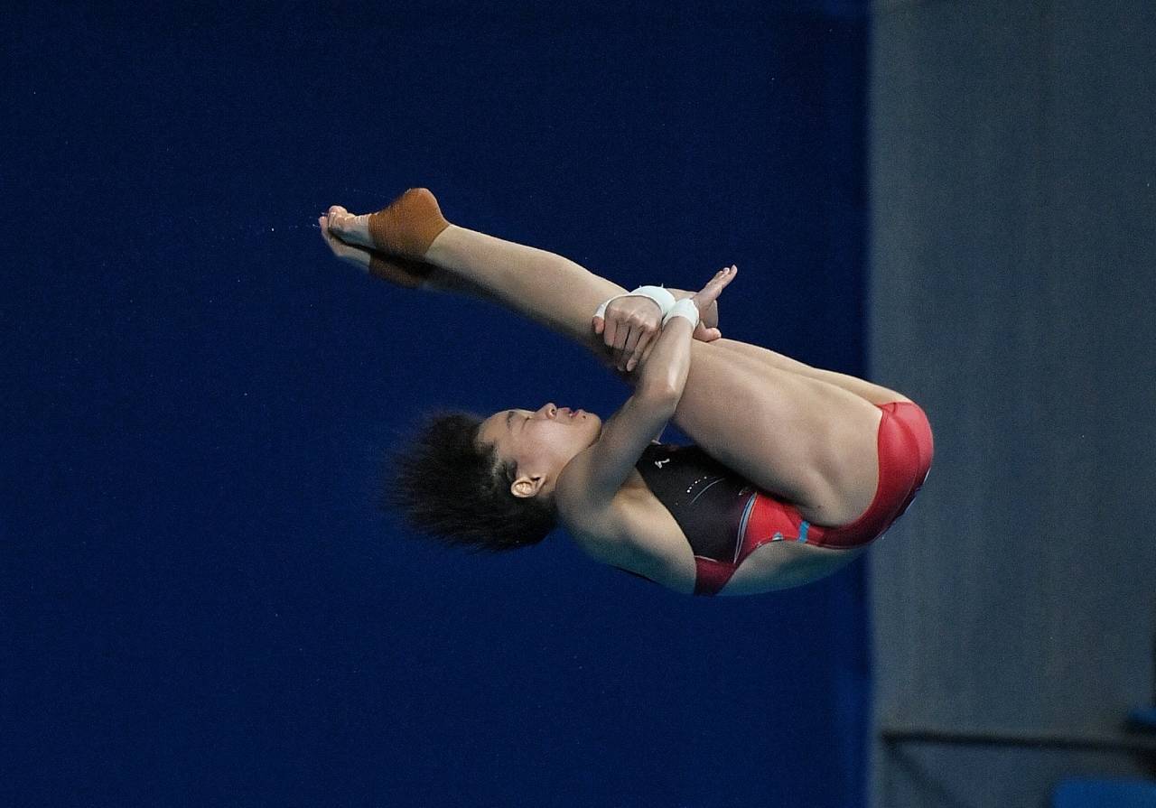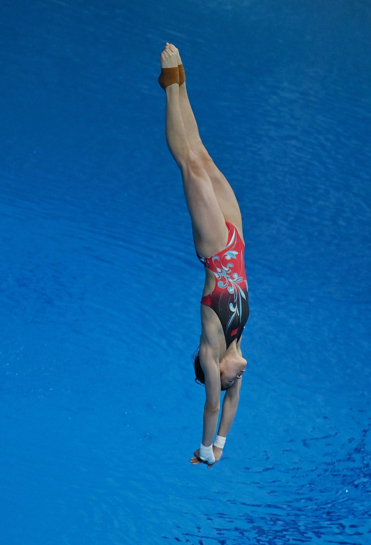 决赛中,两人争相上演“水花消失术”。前两轮和后两轮动作完全一致,第三跳陈芋汐的动作难度系数为3.3,高于全红婵的3.2。