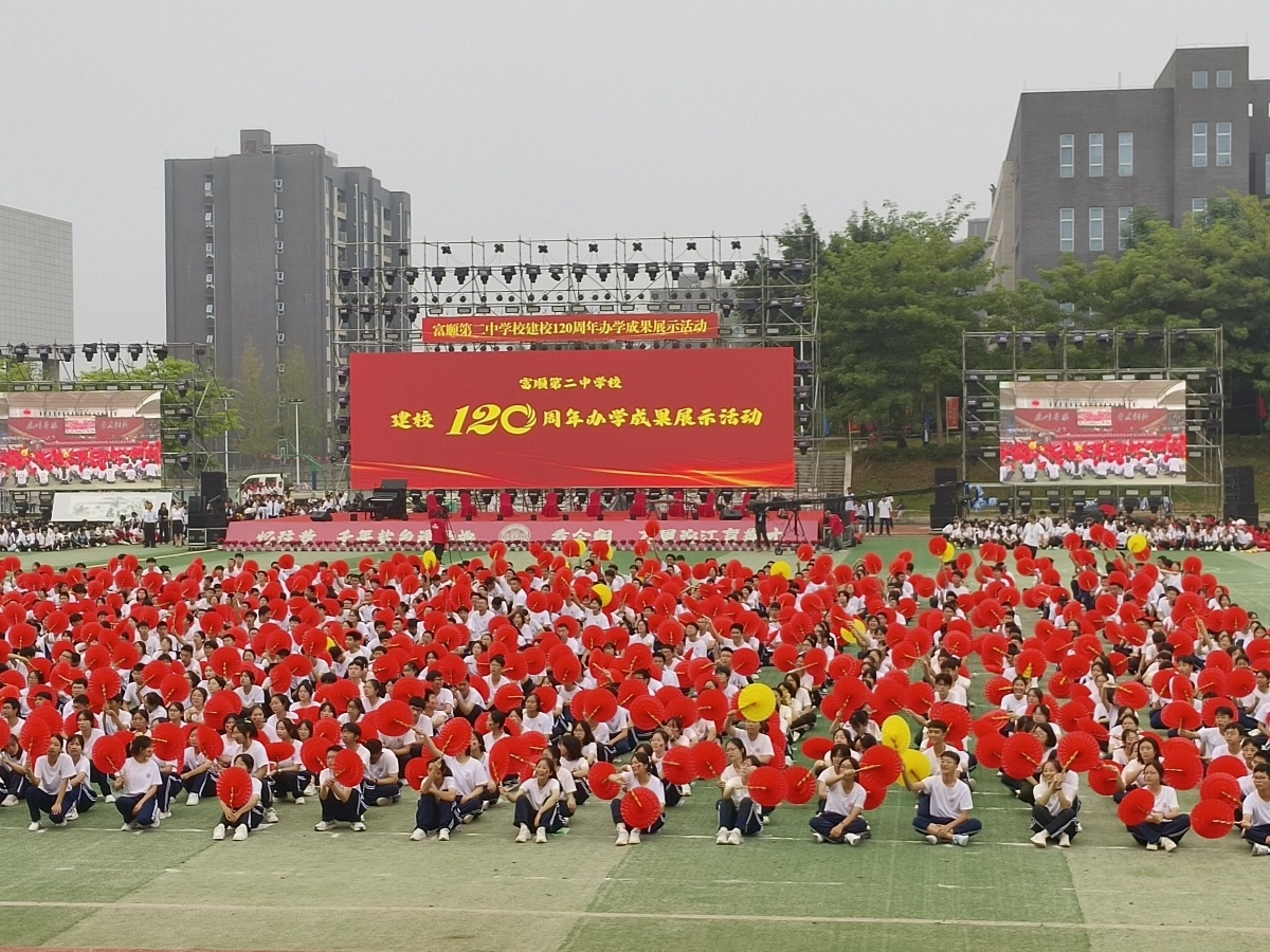 10月3日,富顺第二中学校建校120周年办学成果展示活动举行。自贡市政府副市长周耘、市政协副主席陈刚、自贡市教育和体育局局长黄如贝、自贡日报社总编辑吴少贤,富顺县委书记杨斌、县长冯君、县人大常委会主任郭洁、县政协主席郑向东等市县级领导,清华大学、重庆大学、西华师范大学、西华大学、吉利学院等高校代表,全省校长协会成员学校,自贡市内学校代表、教育体育系统代表、历届校友、师生等1万余人参加活动。