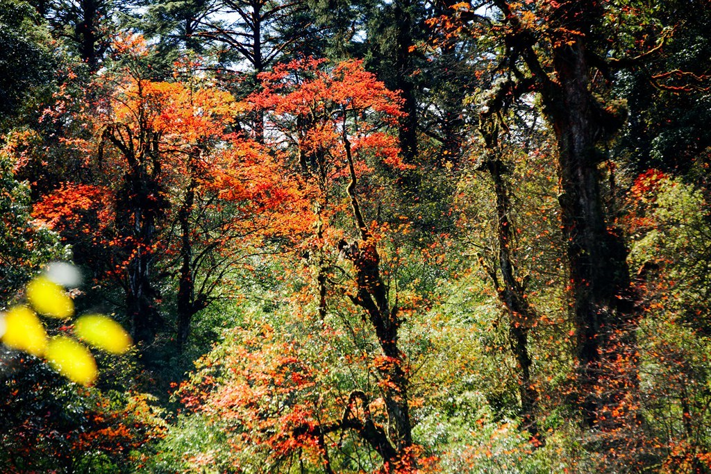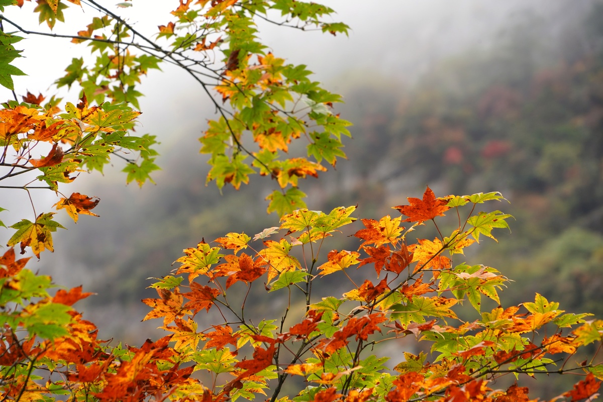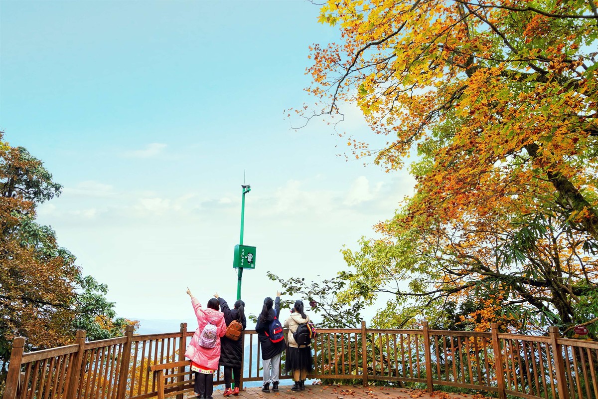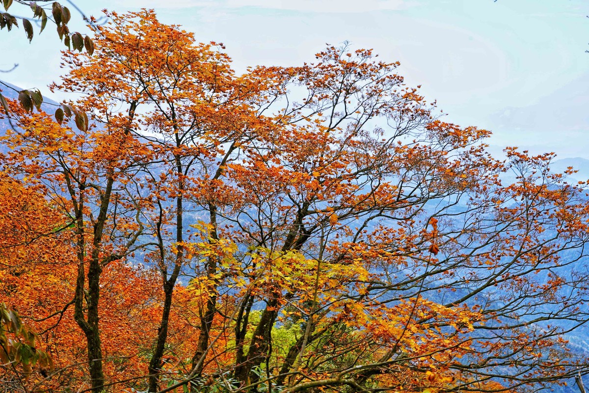 “万树红叶醉金秋”,深秋时节,山里的气候温润,阳光霁雨“平分秋色”,静雅宜人。霏霏细雨将瓦屋山洗染得分外清新,青衣江宛如缎带,环绕青山,缠绵深情;雅女湖恰似一块镶嵌在瓦屋山上的翡翠,轻灵剔透,美不胜收。漫步林间,古木苍郁径道悠远。