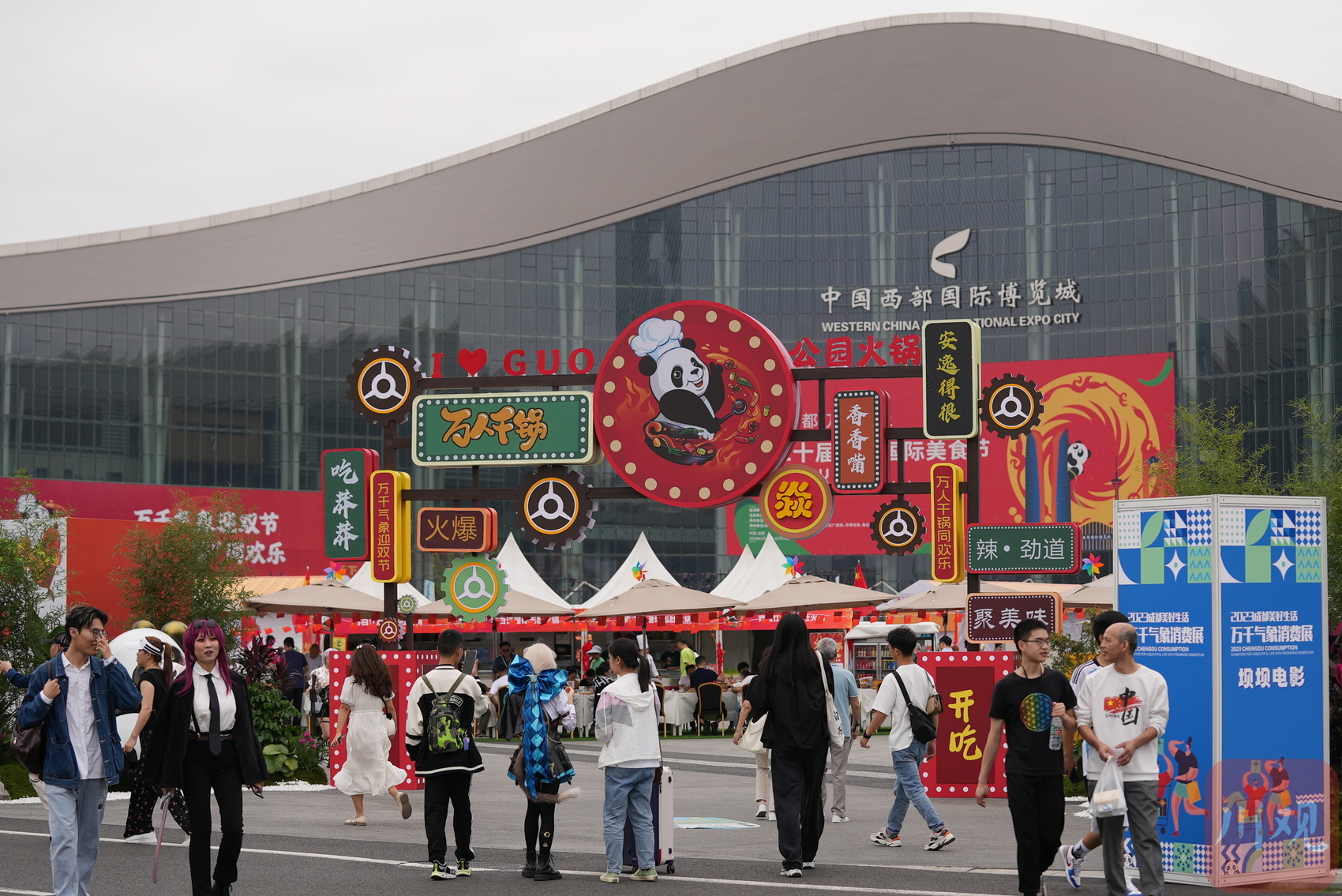成都西博城举办国际美食节,“寻味天府”美食集市可供人们大饱口福。