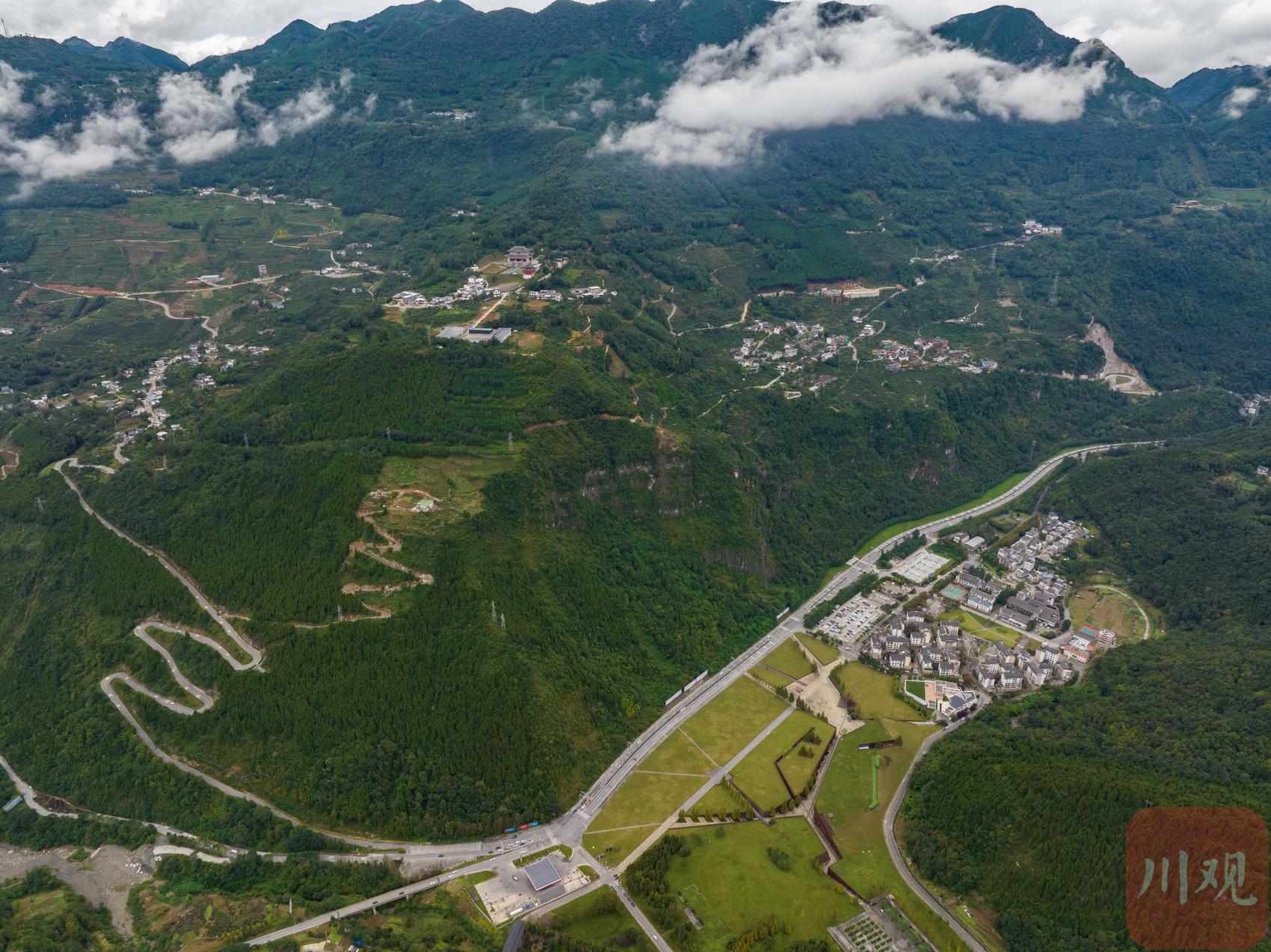 10月4日,绵阳市北川县曲山镇石椅羌寨游客如织,人们来此品羌家美食,赏羌族风情,欢度国庆佳节。四周山峦起伏,云雾缥缈,密布若干羌寨,湔江从山峦之间逶迤穿行,在此形成一个“U”形回湾,俯瞰山川壮丽,美若画卷。