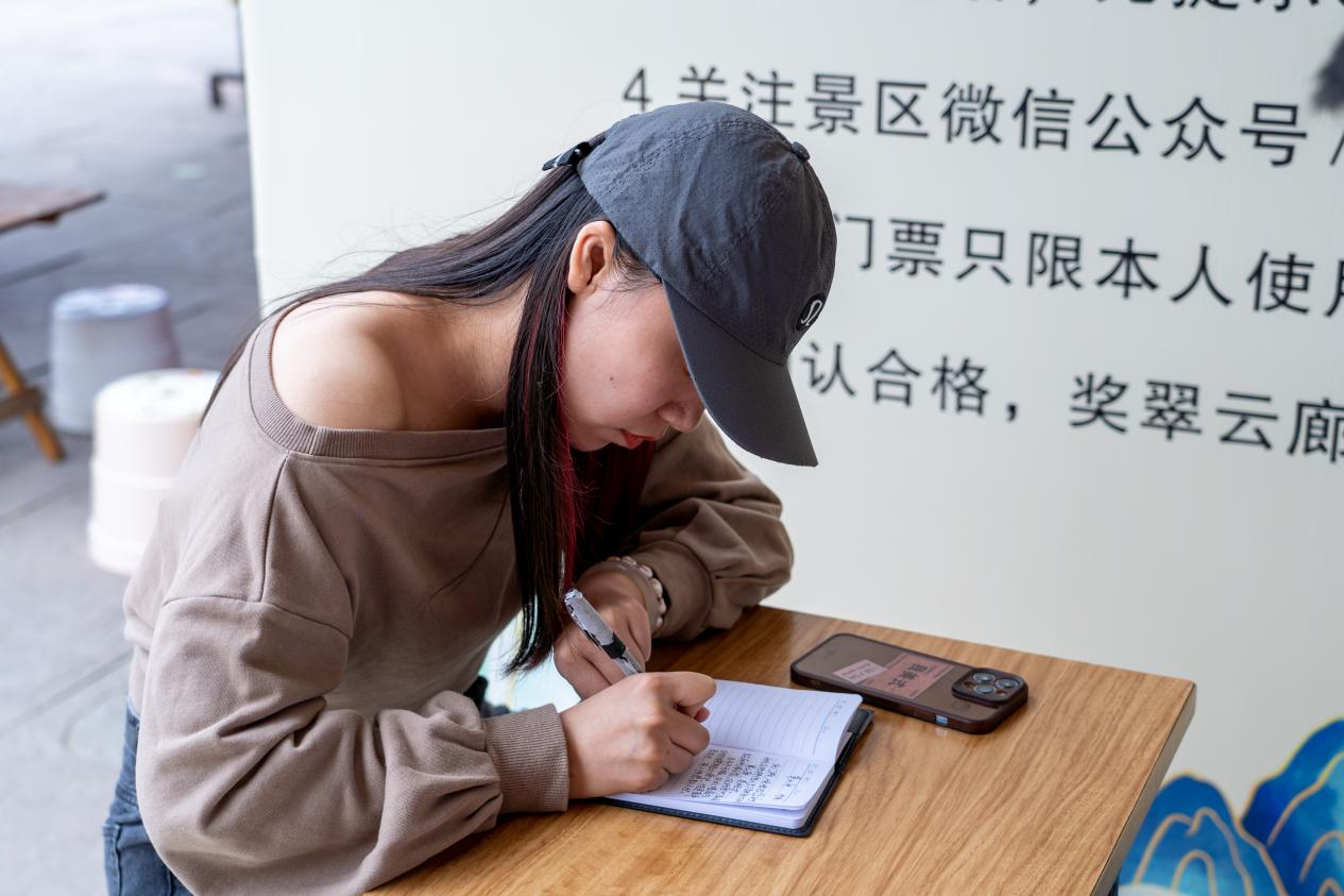 “来剑阁之前,我们做了详细的攻略,早早就背熟了《蜀道难》。今天来到翠云廊,看到又新推出了默写的活动,我儿子说他想试试,就花了一点时间背诵和默写,没想到也顺利完成了。”来自西安的游客张女士向记者讲述儿子默写诗词兑换门票的过程,满脸的自豪与喜悦。