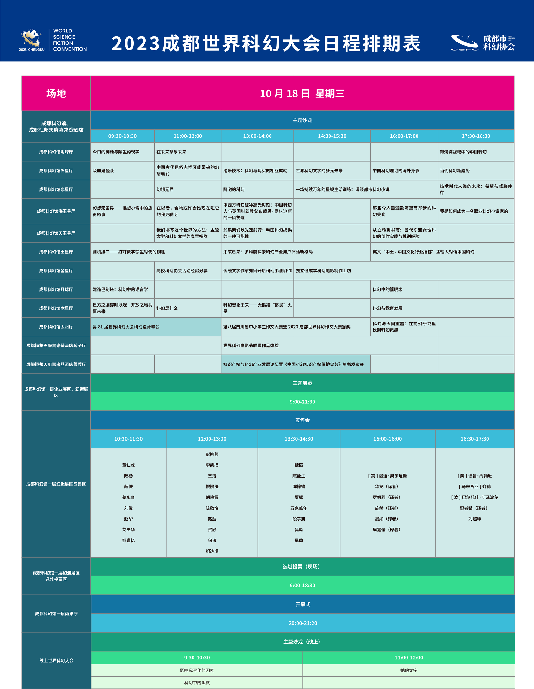 当一座充满幻想色彩的千年古城与最受期待的世界级科幻盛会相遇,将迸溅出什么样的火花?又将演绎什么样的精彩?10月5日,组委会正式公布此次大会日程表,对大会环节、参与嘉宾、活动时间场地等信息进行了具体介绍。