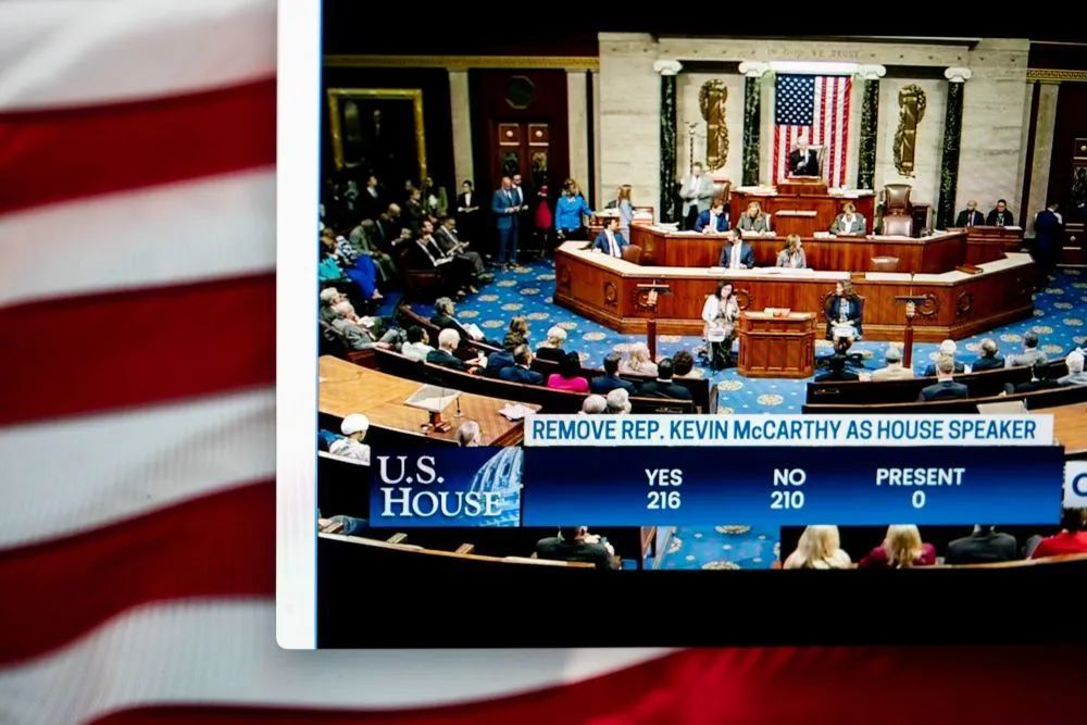 众议院3日以216票赞成、210票反对的结果通过罢免麦卡锡的决议。这项决议由共和党籍众议员马特·盖茨提出,他和另外7名共和党人以及全部参与表决的208名民主党人一起投下赞成票。