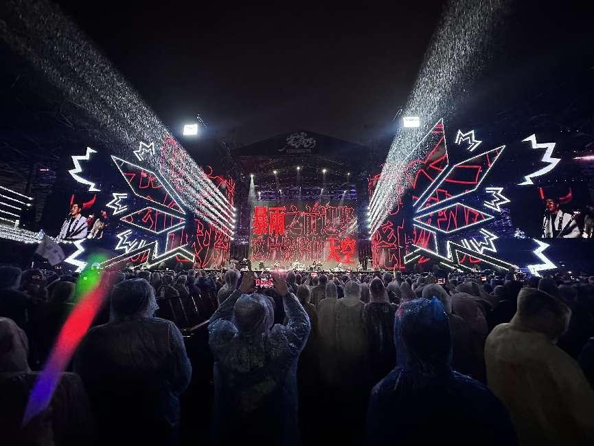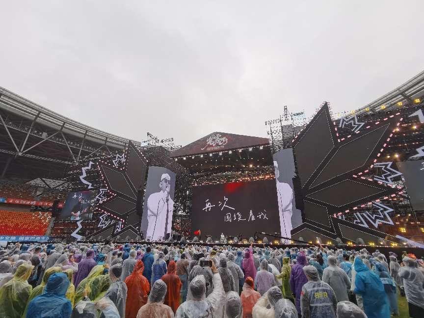 5日下午1点,蒙蒙细雨,距离音乐节开始还有2个小时,数千名观众已陆续到达场馆。场馆内,不少观众身披雨衣,手持荧光棒,兴奋地等待着音乐节开唱。