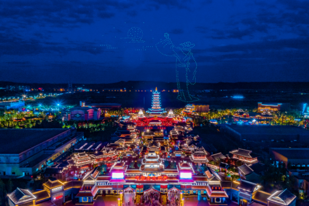 绵阳方特无人机光影秀绘出李白画幅(绵阳市文化广播电视和旅游局供图)