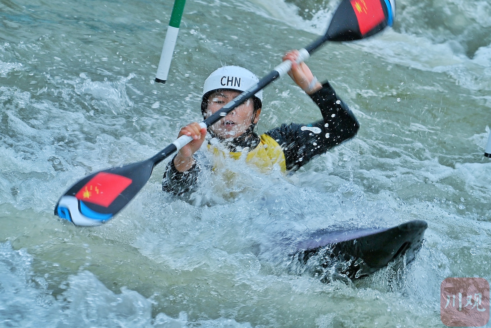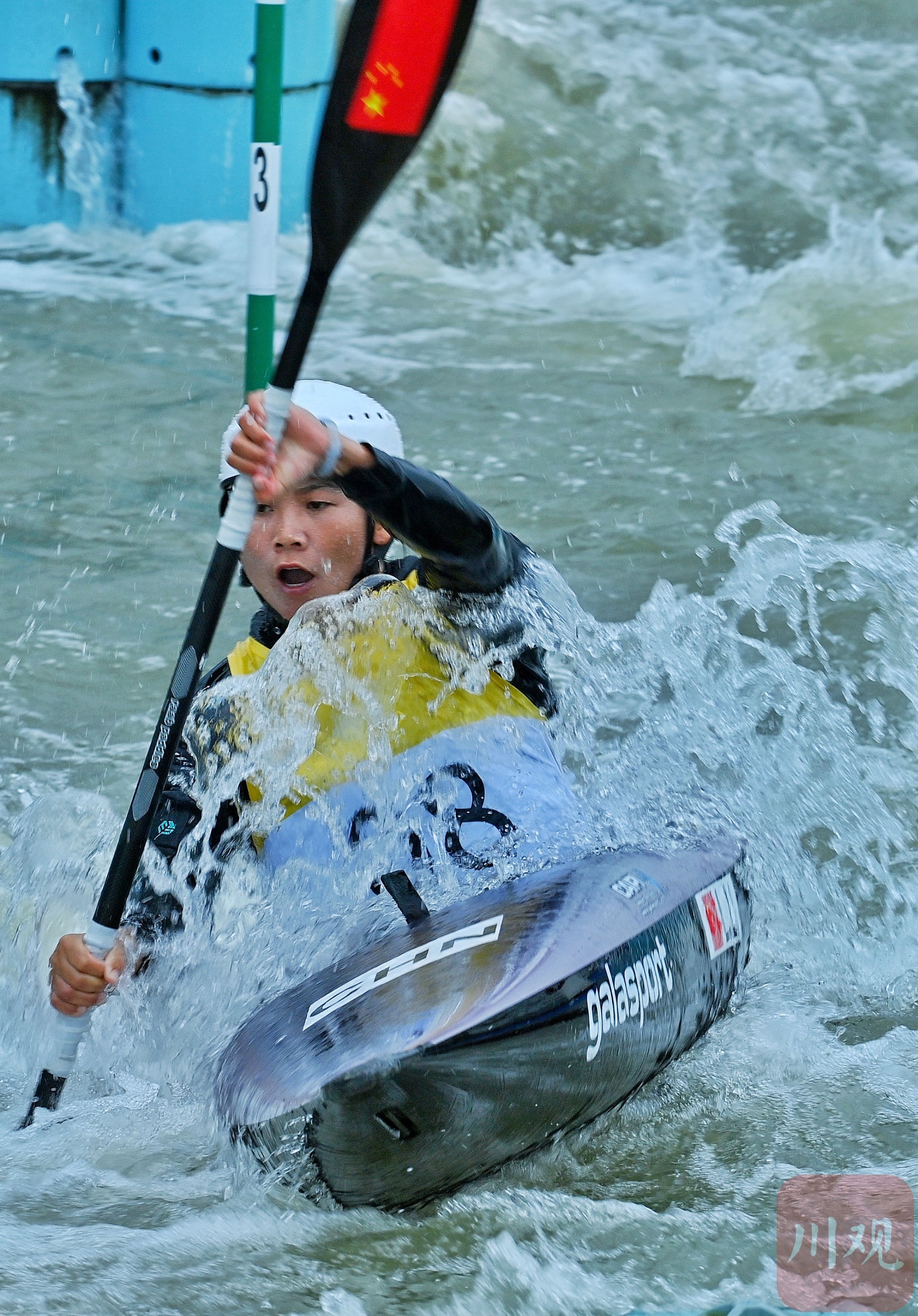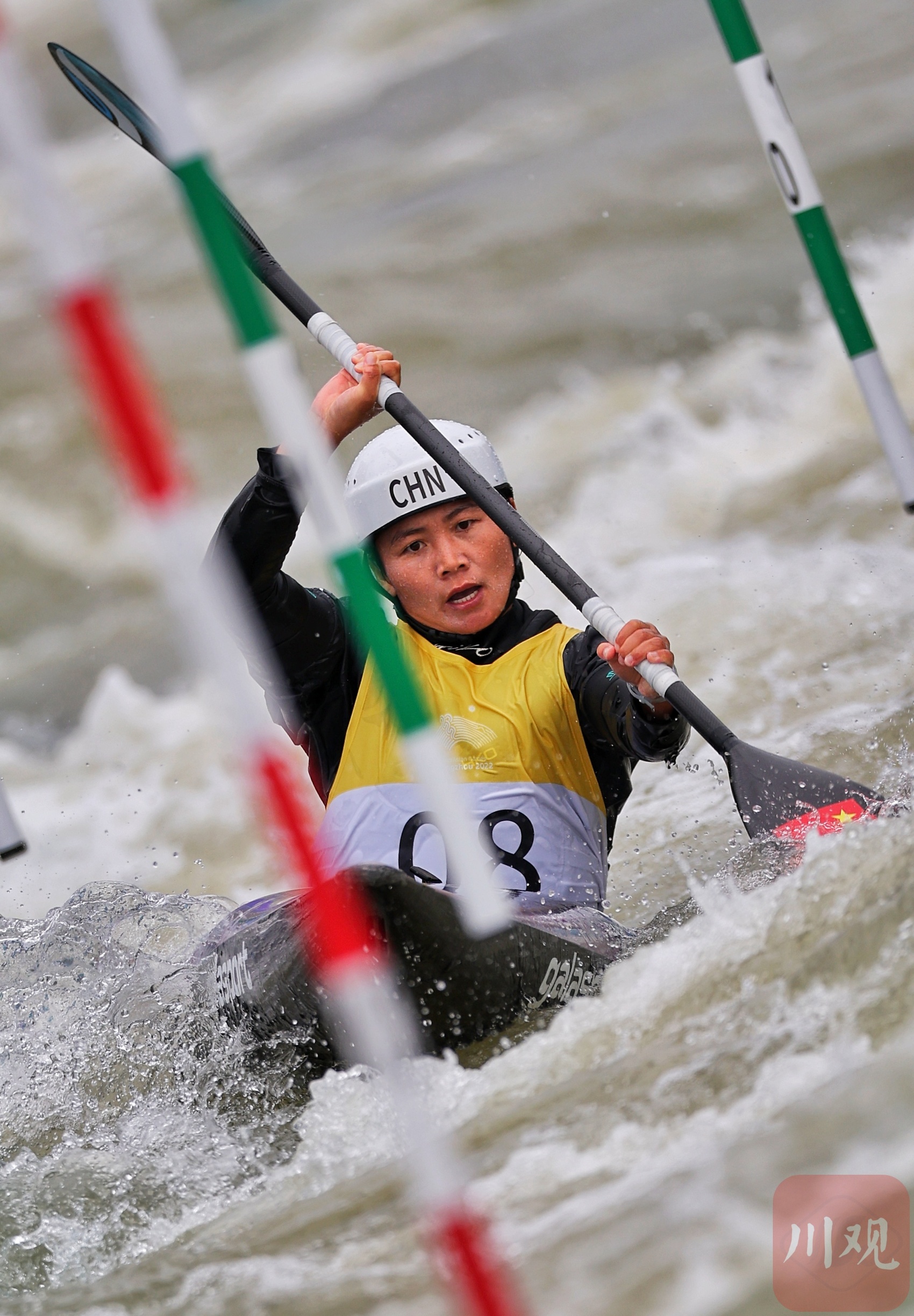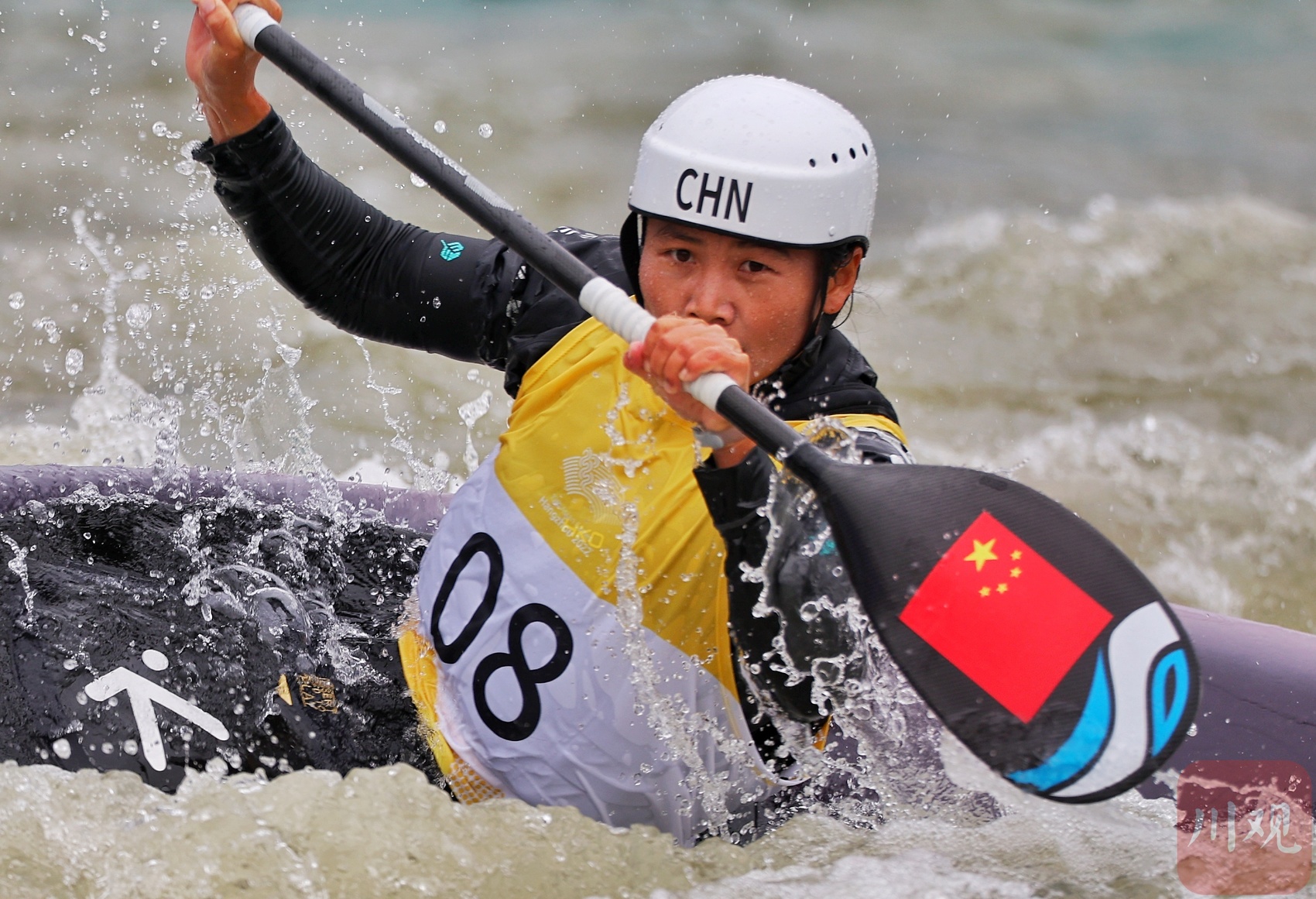10月6日,杭州第19届亚运会皮划艇激流回旋项目男子单人划艇决赛在富阳水上运动中心举行。中国选手谢远聪以98.20分获得男子单人金牌,中国选手李露以110.22分获得女子单人银牌。