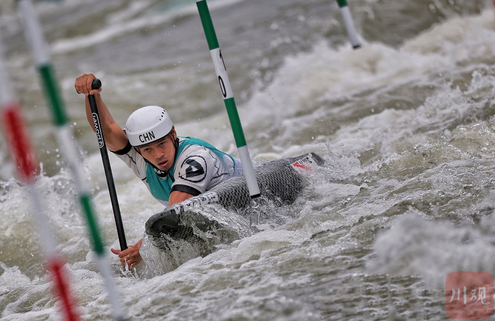 场馆的赛道设有16至25个水门。比赛中,运动员必须按照水门号码顺序和标出的正确方向通过各个水门。过门时,身体、器材、桨或船艇的任何部分不触碰门杆。触及门杆视为碰杆,罚2秒,反复触碰同一个门杆或两侧门杆只罚秒一次;运动员头的任意部位在任何时候都不得以错误的方向触及门线,否则罚50秒;运动员开始过下一水门或通过终点线时,可判定其是否漏门;若运动员在比赛中人和艇脱离,则被取消该轮比赛成绩。