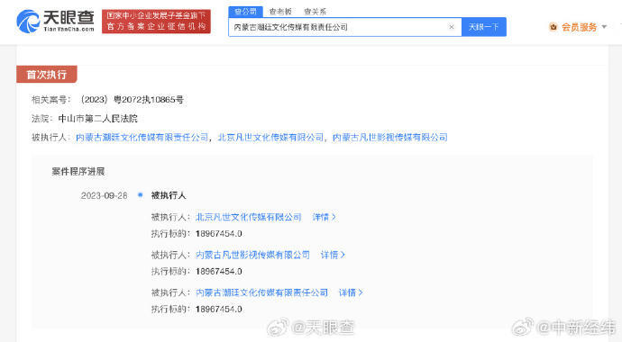 天眼查App显示,近日,吴亦凡关联公司新增一则被执行人信息,执行标的1896万余元。吴亦凡关联公司北京凡世文化传媒有限公司成立于2015年1月,法定代表人为吴亦凡表哥吴林,由吴林和胡冰洁共同持股,吴亦凡母亲吴秀芹任监事。据悉,此前,华帝股份曾向吴亦凡公司索要千万代言费,华帝公司请求法院判令解除其与被告凡世影视传媒公司、潮廷文化传媒公司签订的服务合同;并判令上述两公司和北京凡世文化传媒有限公司连带向原告退还服务费1750万元及利息等。