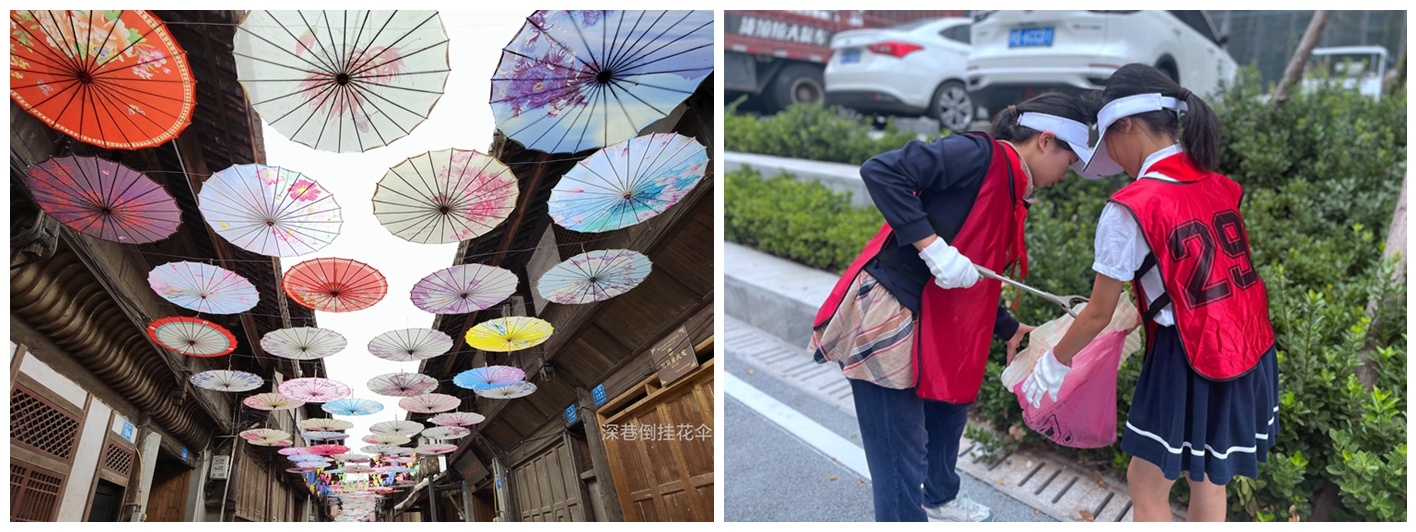 川观用户“陈艺鑫”晒出了“红领巾们”走上街头捡拾垃圾的图片: