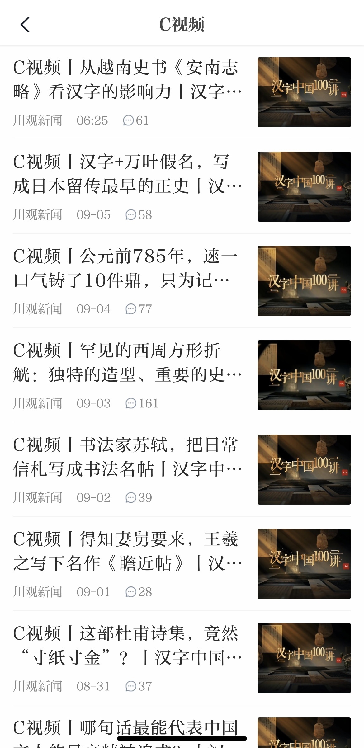 10月7日,由川观新闻策划推出的“汉字中国100讲”系列短视频迎来第100期收官之作。在过去的100天里,“汉字中国100讲”系列短视频以成都博物馆“汉字中国——方正之间的中华文明”特展展出文物为线索,向广大读者讲述汉字与中华文明相生相发、互相成就的历史,收获广大读者好评。
