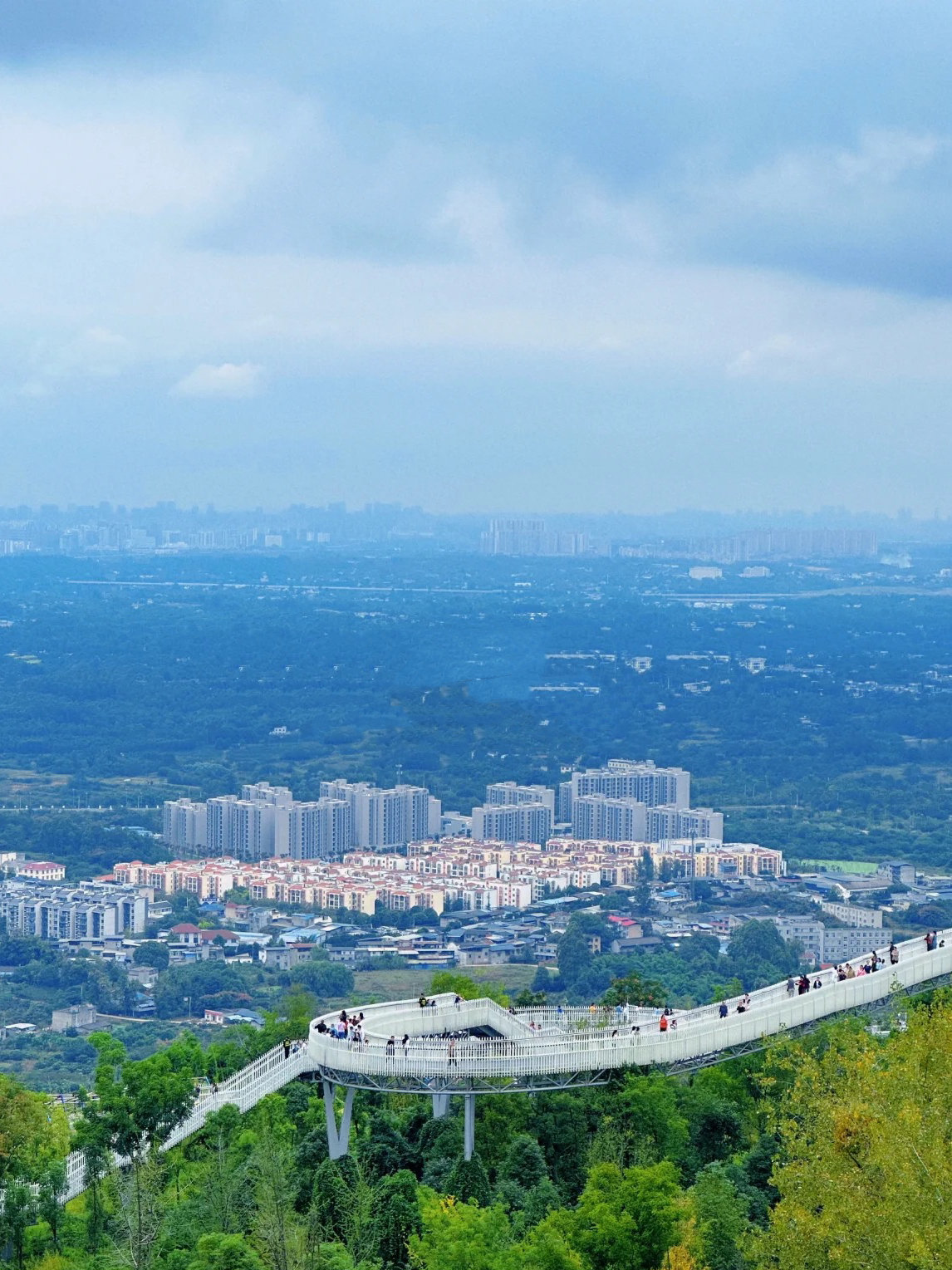 10月4日下午,成都龙泉山森林公园合江景区的高空栈道上,数百名游客穿梭其中,观赏龙泉山的壮丽景色。据了解,这座高空栈道于“双节”假期开放,吸引了大批游客前来体验。栈道全长2.81公里,距离地面最高处23.8米,为游客提供了一个绝佳的视角,可以一览城市风光和龙泉山的景色。