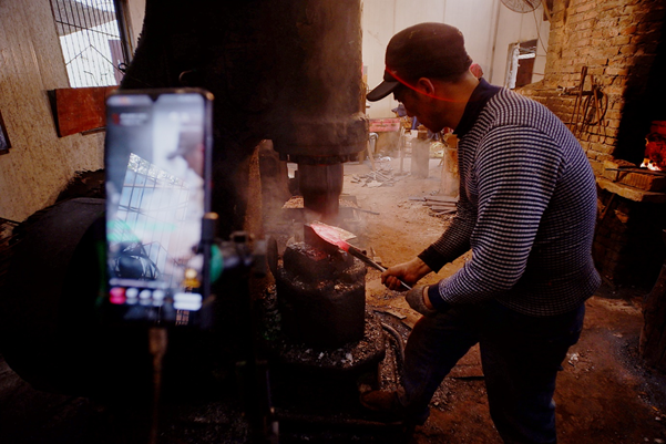 手机成为新“铁具”,古法制刀通过网络直播平台被数万人围观。
