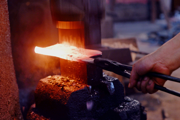 铸刀用火是精髓,要经历溅火、回火等步骤。