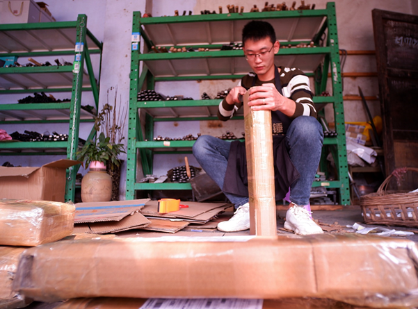 今年“双十一”,周家刀一共卖出了2000多把。图为打包快递。