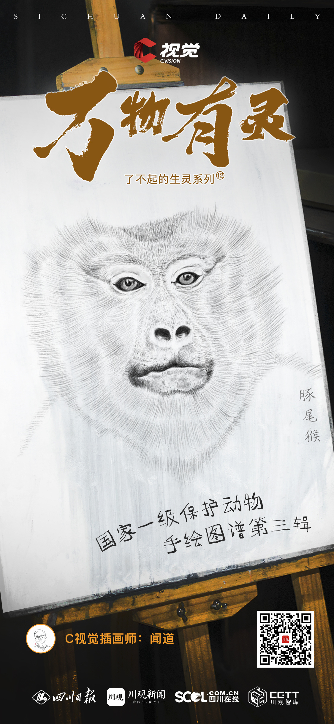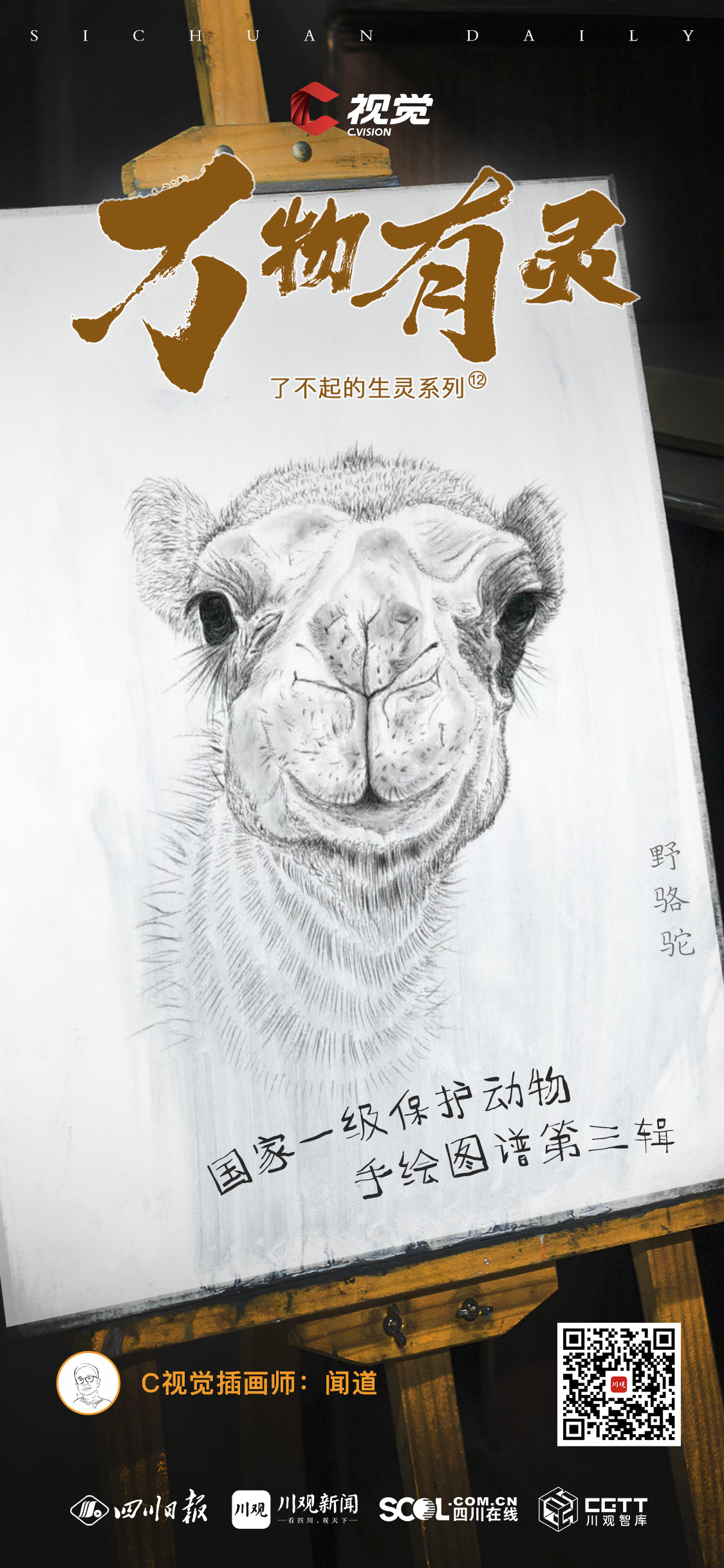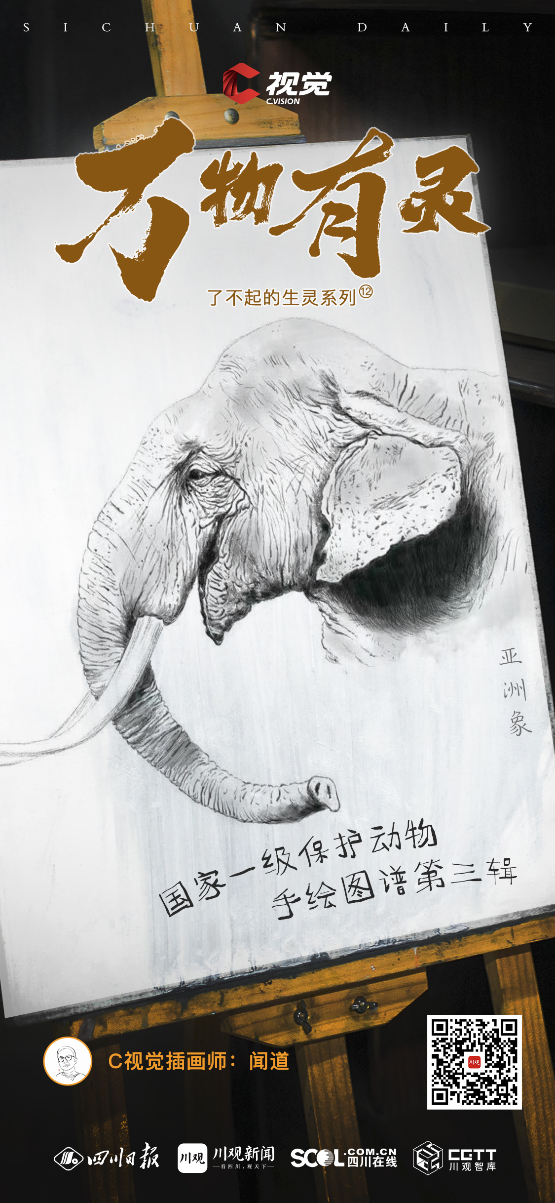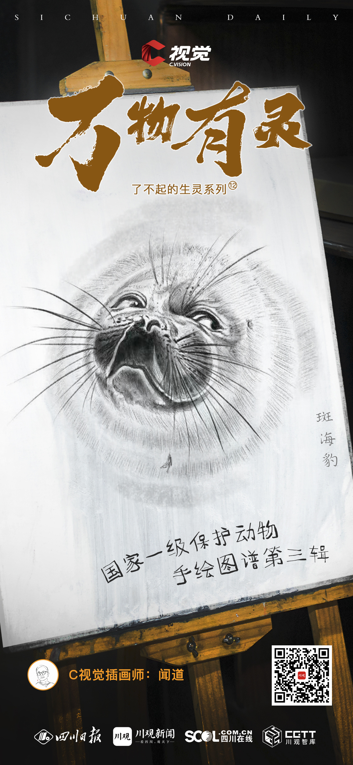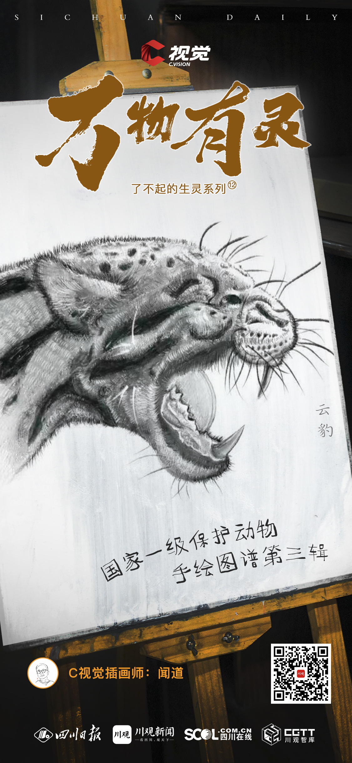 C视觉插画师闻道以精湛的绘画技艺和对生灵的热爱,将动物们的形态、神态和生态特征栩栩如生地呈现在画纸上。