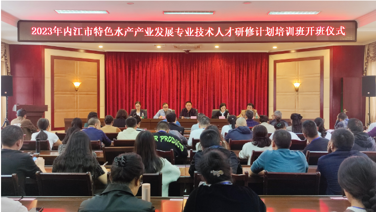 10月8日下午,2023年内江市特色水产产业发展专业技术人才研修计划培训班开班仪式在市人社局举行,来自全市水产行业基层一线的100名学员将在6天的时间内,开展理论知识学习、参加现场教学、进行主题研讨,不断提升专业技术能力,夯实内江特色水产产业高质量发展人才支撑。