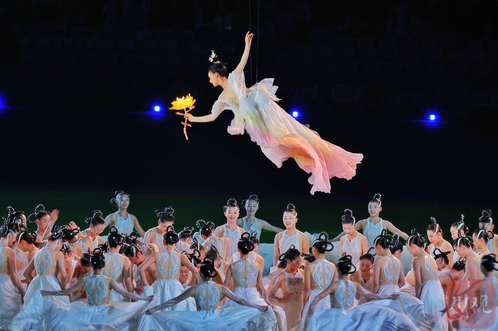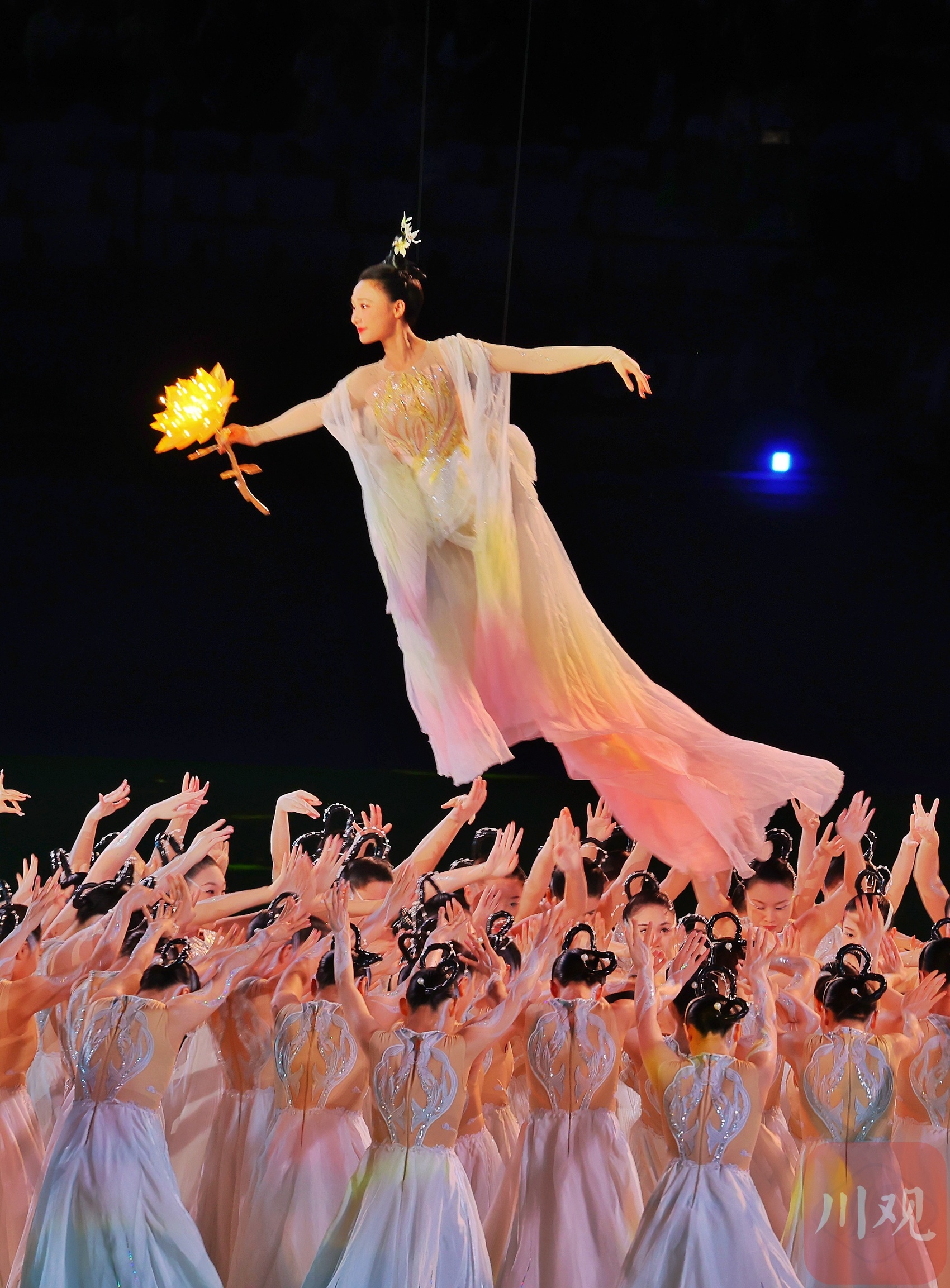 “相聚一团火,化作满天星。从开幕到闭幕,我们希望讲述这样一个故事,我们从中可以看到一个包容开放的中国、心心相融的亚洲,还有生生不息的体育精神。”闭幕式总导演沙晓岚这样阐释“数字火炬人”背后的核心理念。