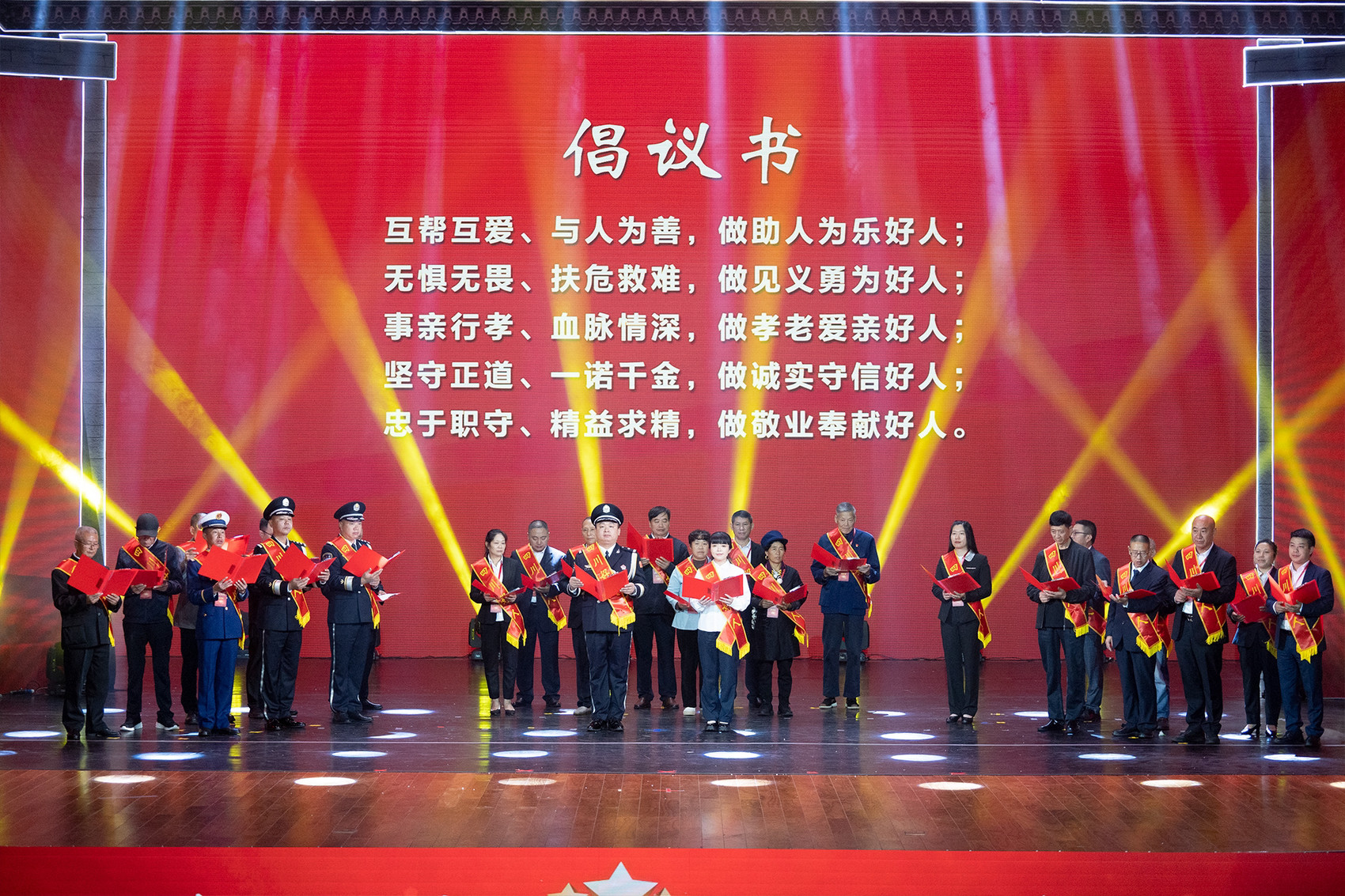 在颁奖环节结束后,各行业代表、四川好人们上台,共同发出倡议,用铿锵有力的道德宣言,学习传承榜样力量、弘扬文明风尚、共同向上向善。