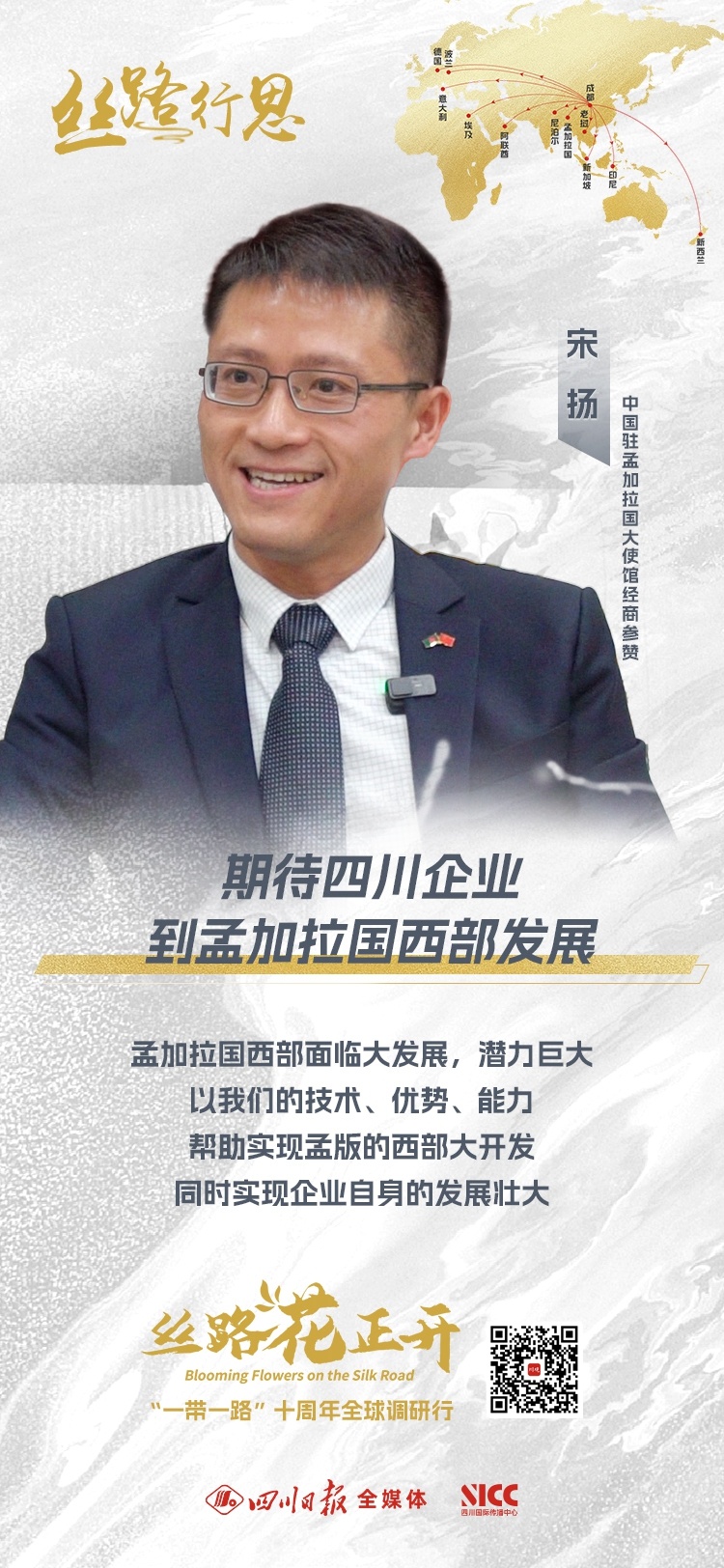 孟加拉国是南亚地区首个与中国签署共建“一带一路”合作谅解备忘录的国家。在这里,有哪些发展机遇可以参与共享?中国驻孟加拉国大使馆经商参赞宋扬接受了川观新闻记者专访。