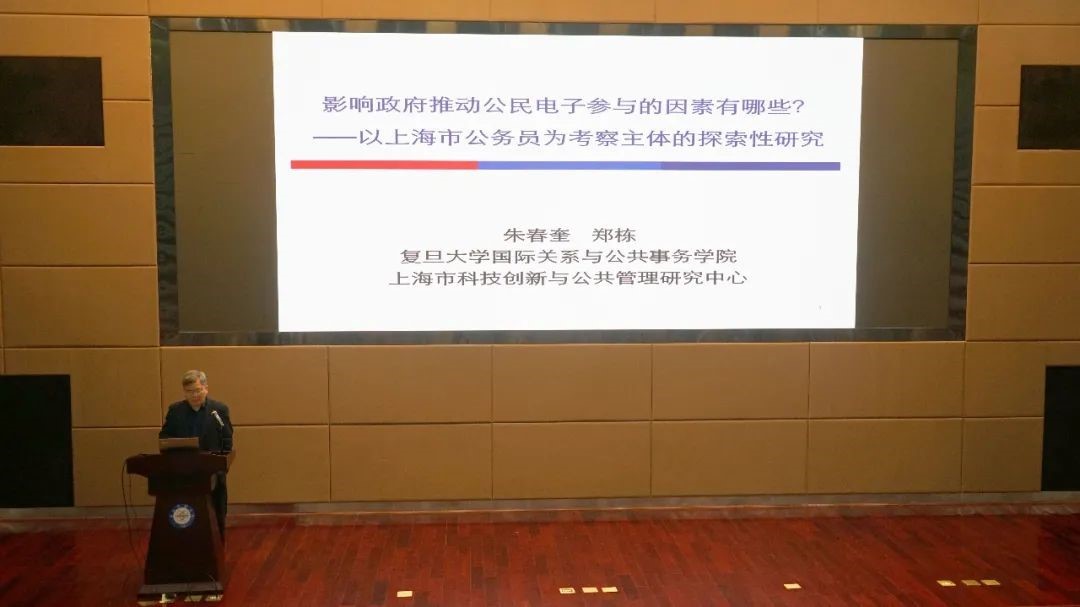 复旦大学国际关系与公共事务学院朱春奎教授就“公务员推动公民电子参与意愿与行为的影响因素研究”做了相关主题报告,提出了政府与公民信任关系的独到见解。