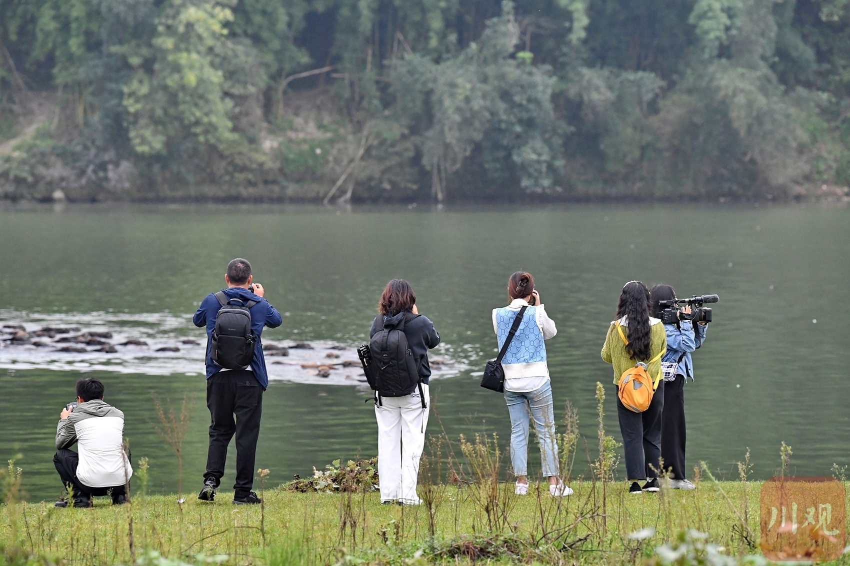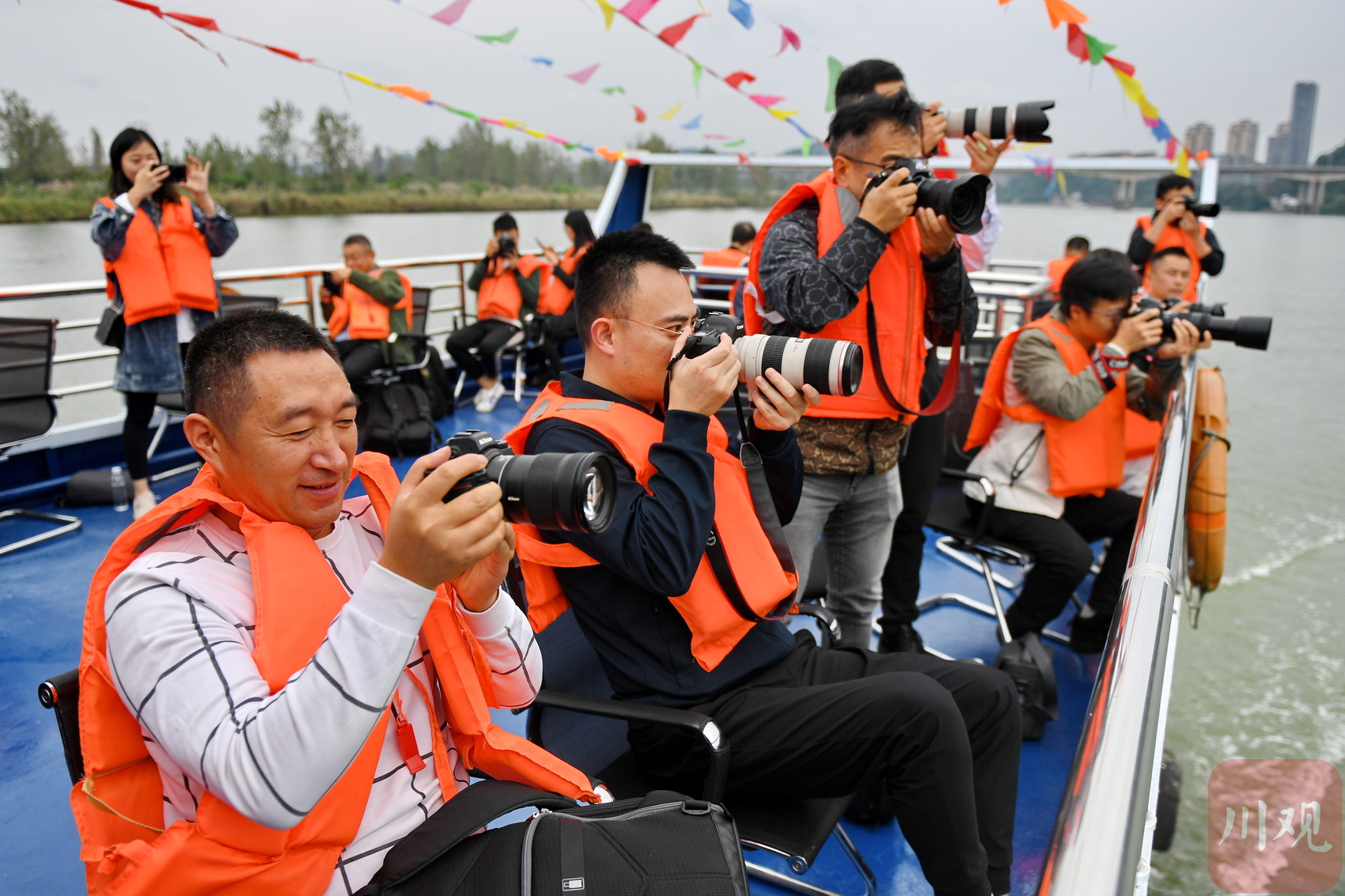 摄影师在船上拍摄嘉陵江蓬安段沿途风光。