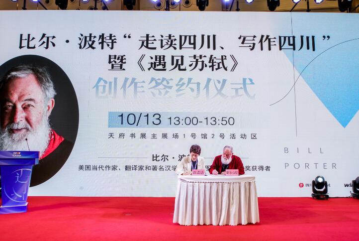 10月13日,“比尔·波特‘走读四川、写作四川’暨《遇见苏轼》创作签约仪式”在2023天府书展主场馆举行。美国当代著名作家、翻译家、汉学家比尔·波特在这里,签下了一个重要决定——为苏东坡写书,创作《遇见苏轼》,并交由四川文艺出版社出版。