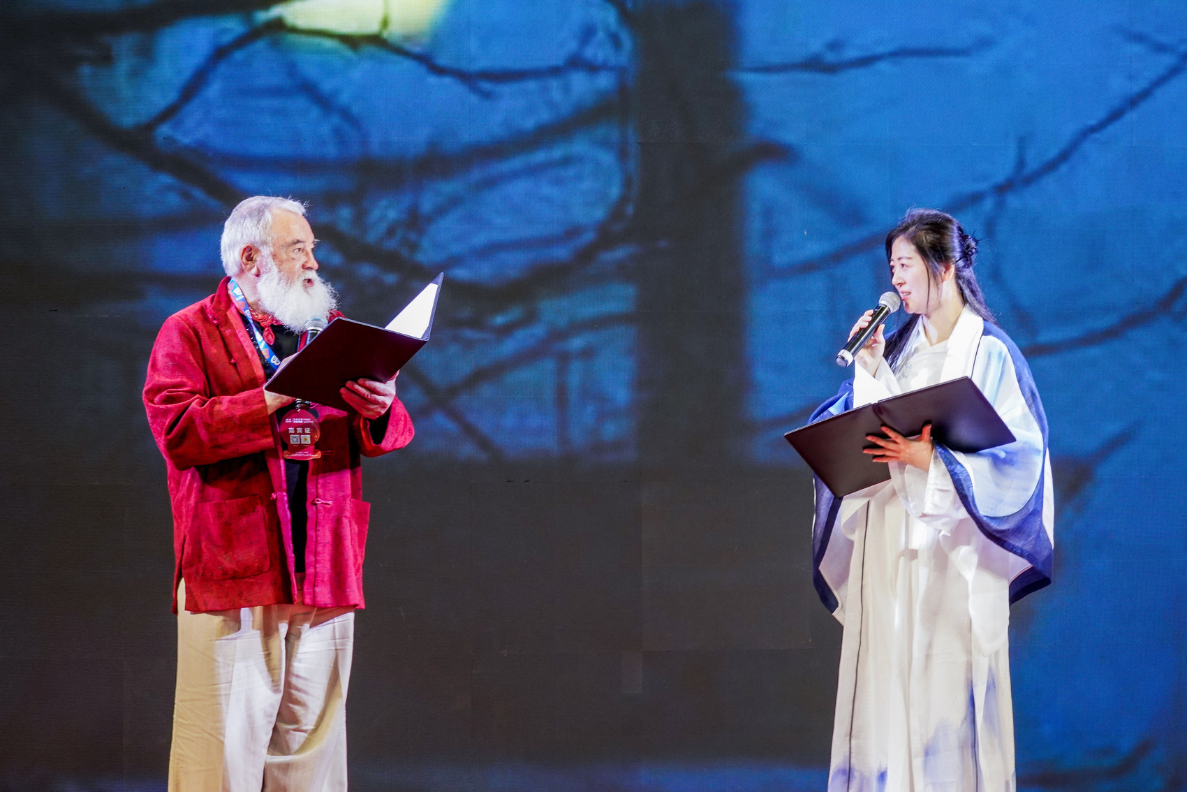 签约仪式上,比尔·波特与成都琢育国学院居玉洁女士在乐师的伴奏下用双语的形式一起朗诵了苏轼的《水调歌头·明月几时有》及《临江仙·夜归临皋》。苏东坡在千年前写下的传世诗篇,跨越了语言和文化的隔阂,打动了所有与会者。