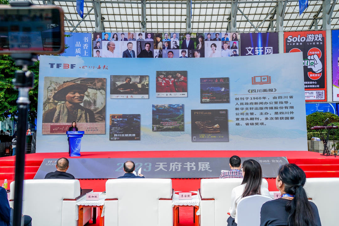 10月13日下午,2023“天府丰收美画卷”推介会暨《四川画报》“画卷天府·丰收之歌”专刊首发式在2023天府书展主展场举行。通过主题演讲、丰收歌舞、数据报告等内容,展现天府丰收的喜乐景象。
