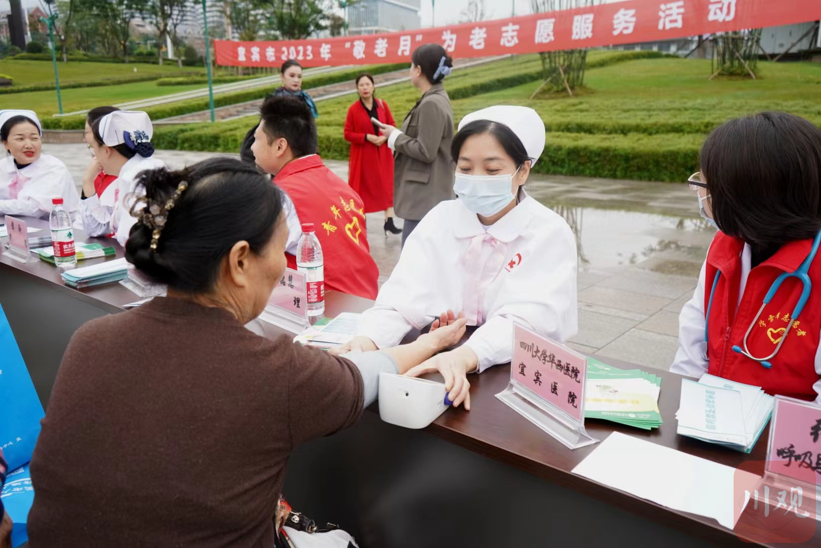 活动现场,宜宾市老龄工作委员会邀请医务人员为老年人开展健康咨询、中医看诊、用药指导、康复护理、心理关爱等志愿服务活动,为老年人提供心理疏导和精神关怀,并提供智慧助老指导、法律咨询、应急救护培训,宣传用电安全和省电小技巧知识。